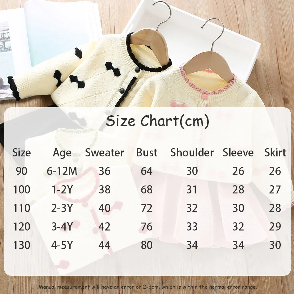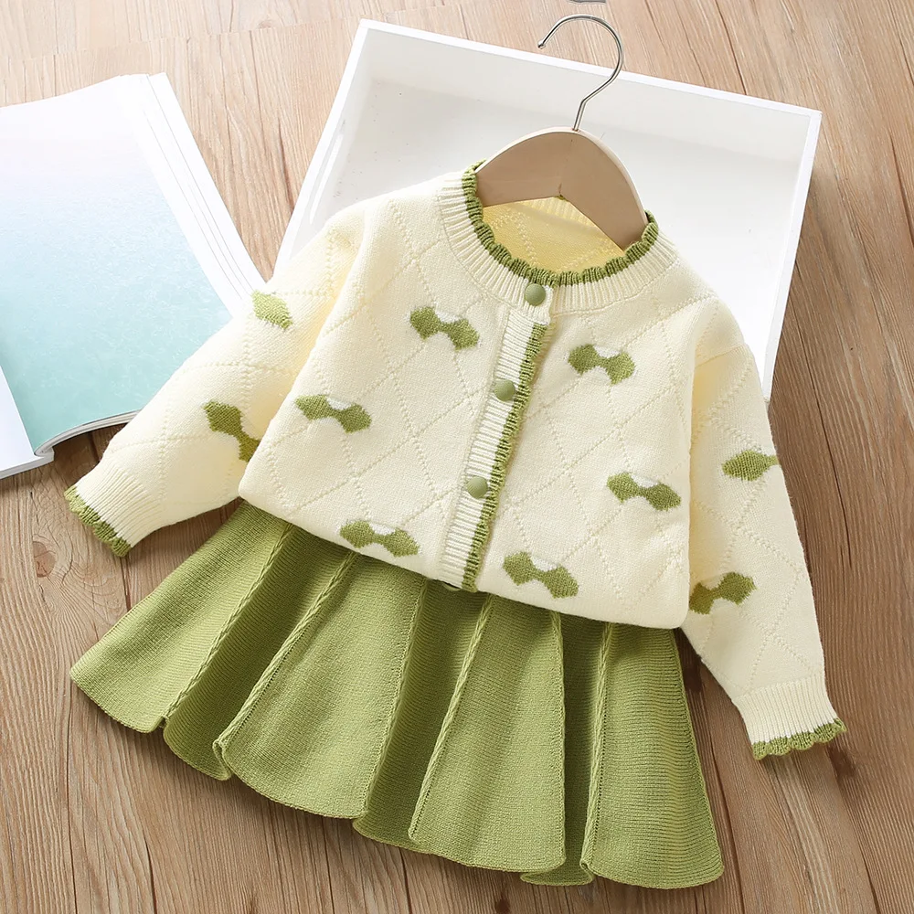 Comprar MILANCEL-Conjunto de suéter para niña de 1 a 5 años, cárdigan y falda con lazo de punto, traje de ropa para niño de primavera y otoño, 2 uds.