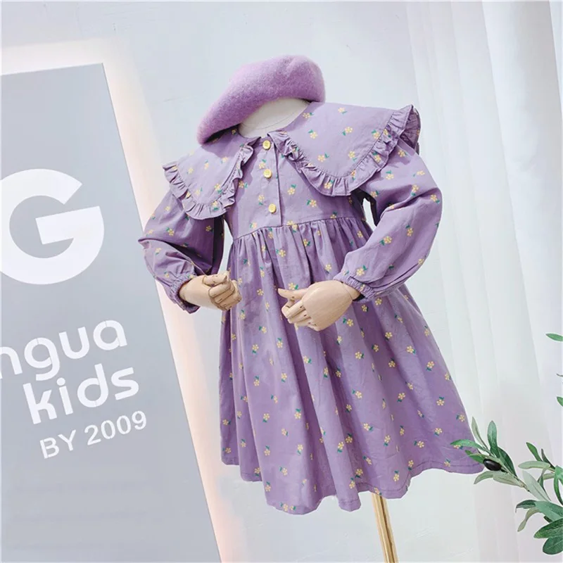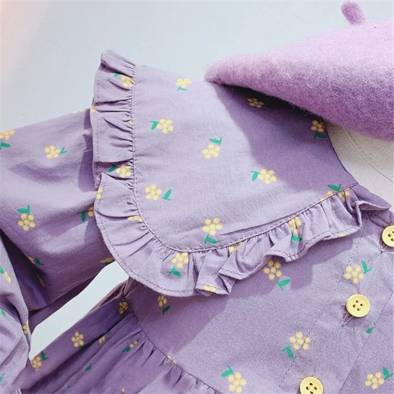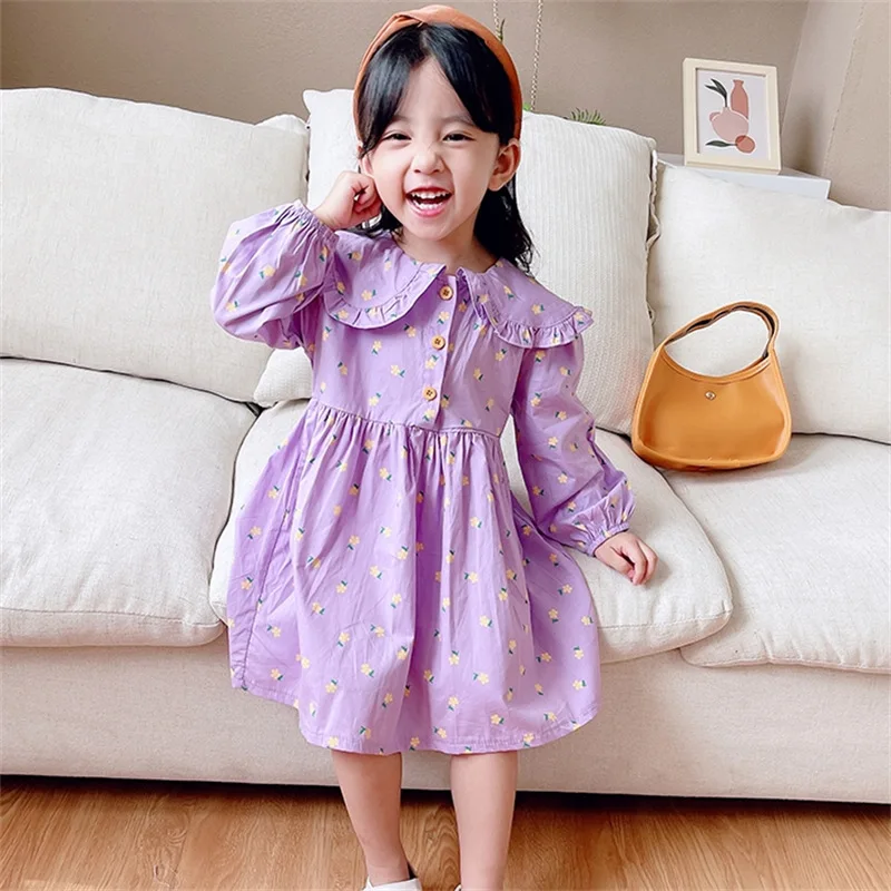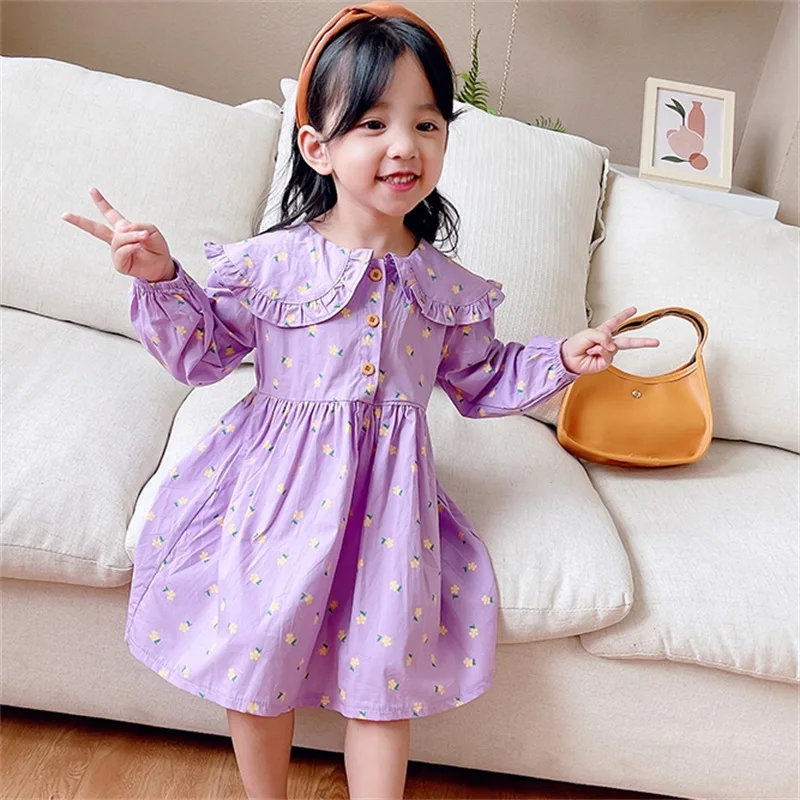 1. Season - suitable: Ideal for the spring and autumn seasons, providing the right amount of warmth and comfort for mild weather.2. Korean - style fashion: Features a trendy Korean - inspired design, making your little girl stand out with its unique and stylish look.3. Comfortable material: Made of soft cotton, ensuring a comfortable fit and being gentle on a child's delicate skin.4. Doll - collar charm: The doll - collar adds a touch of cuteness and elegance, enhancing the overall charm of the dress.5. All - around style: The floral pattern and ruffled details make it suitable for various occasions, from casual outings to more formal events.