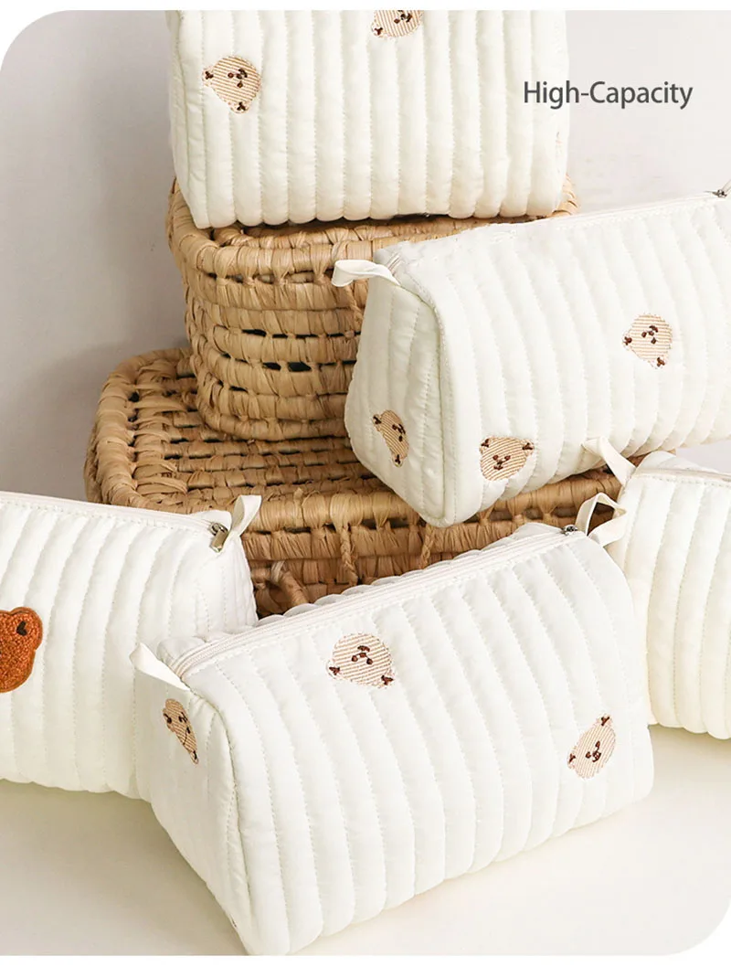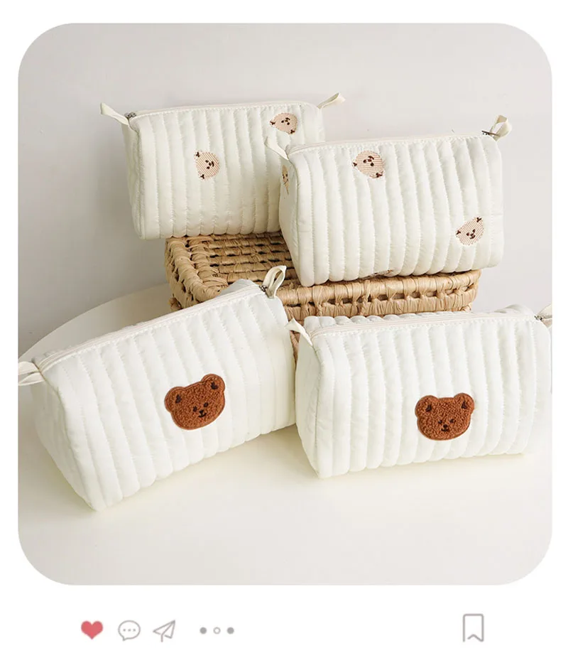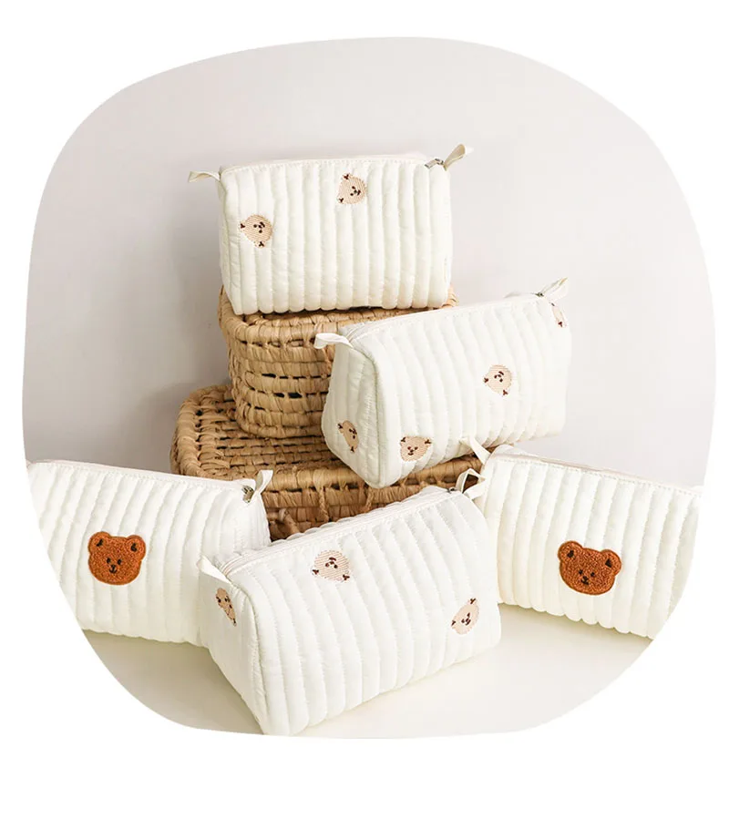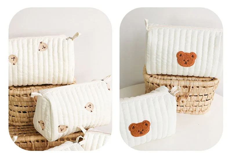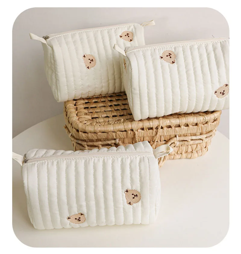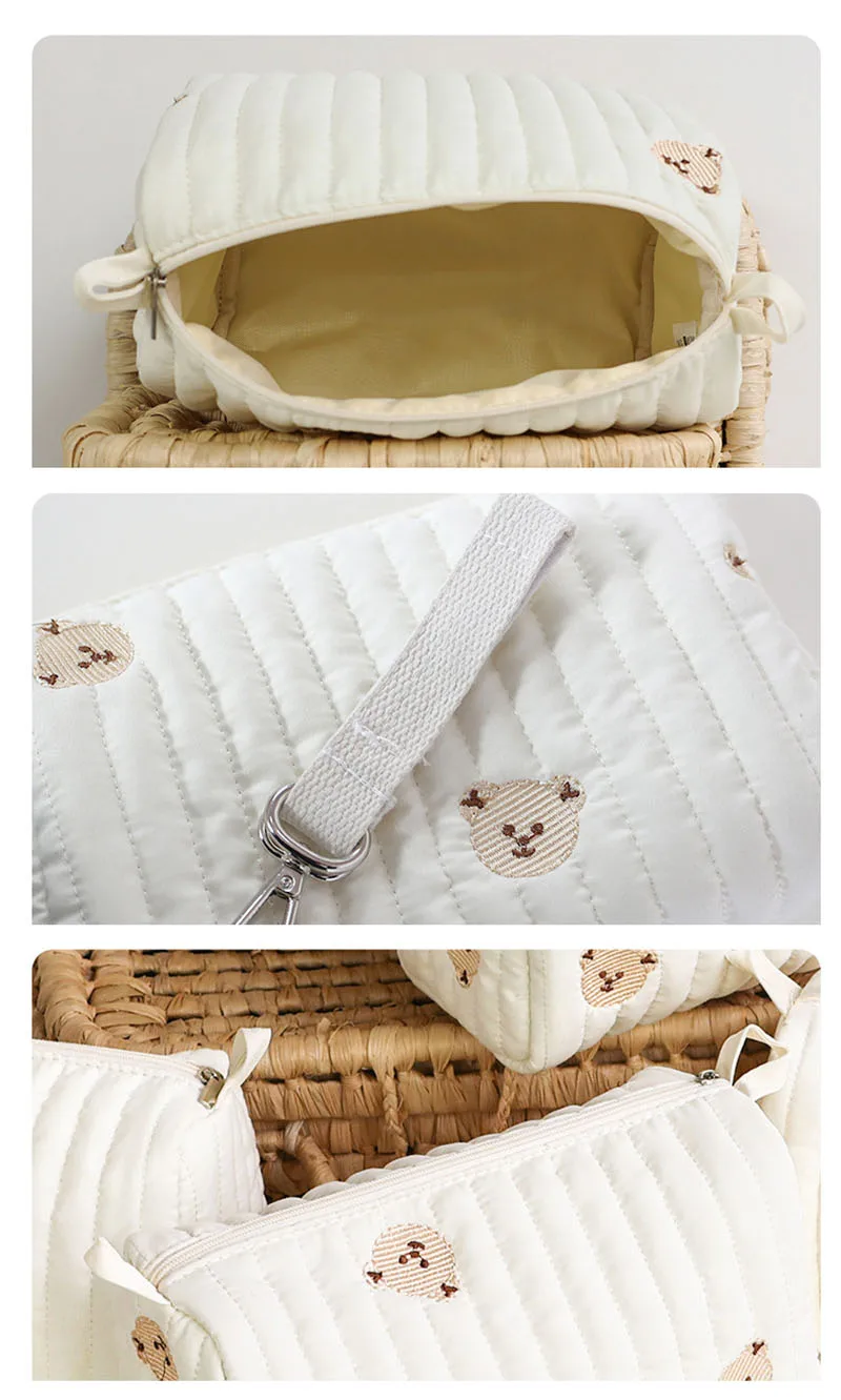 1.**Adorable diseño de bordado**: presenta un lindo bordado de oso sobre una tela blanca texturizada, que agrega un toque encantador y único.