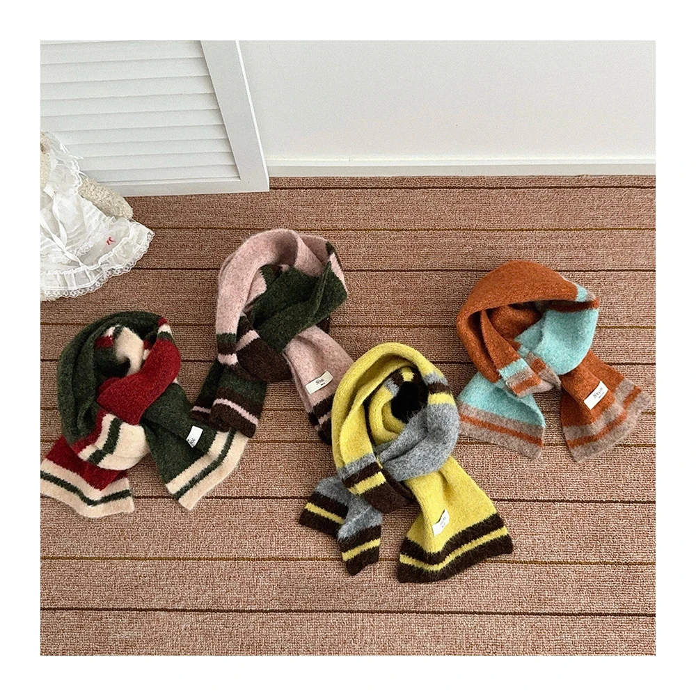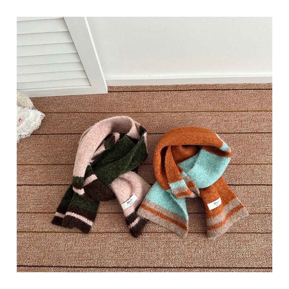 Comprar MILANCEL nueva bufanda de invierno para niños 1-7T franjas de diferente Color raya niños silenciador acolchado de lana niñas accesorios gruesos