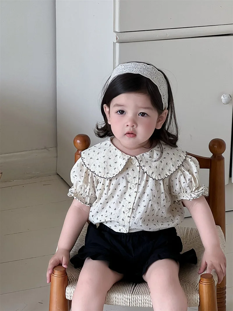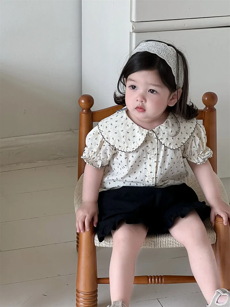3.**Detalles prácticos**: La camisa tiene un botón en la parte delantera para vestirse fácilmente, y los pantalones cortos vienen con una cintura elástica para un ajuste cómodo.Las mangas cortas abullonadas de la camisa añaden un aspecto adorable.