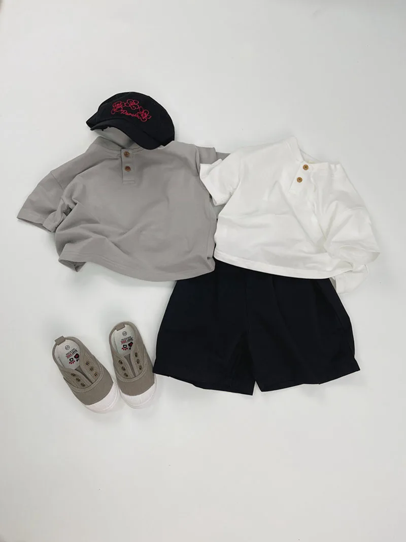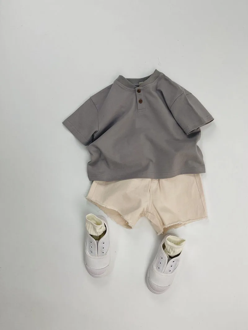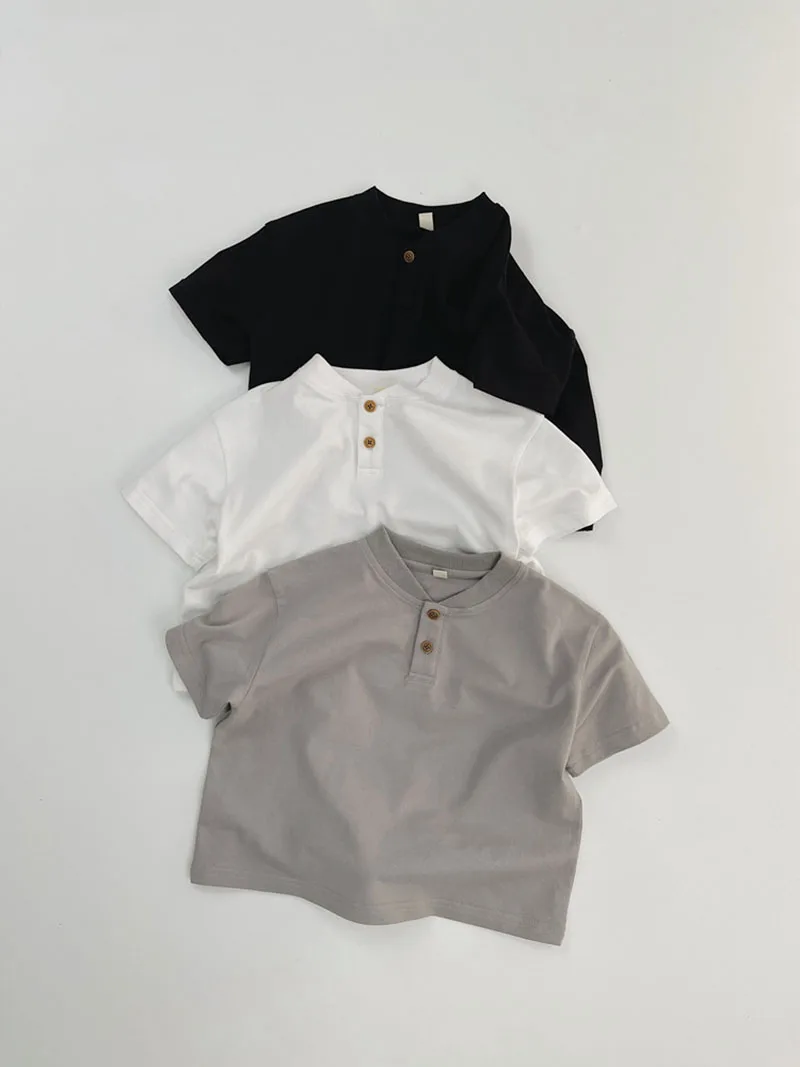 3.**Diseño único de estilo Henley**: La tapeta estilo henley con botones agrega un toque de sofisticación y singularidad al diseño básico de la camiseta, haciéndola destacar de los camisetas comunes para niños.
