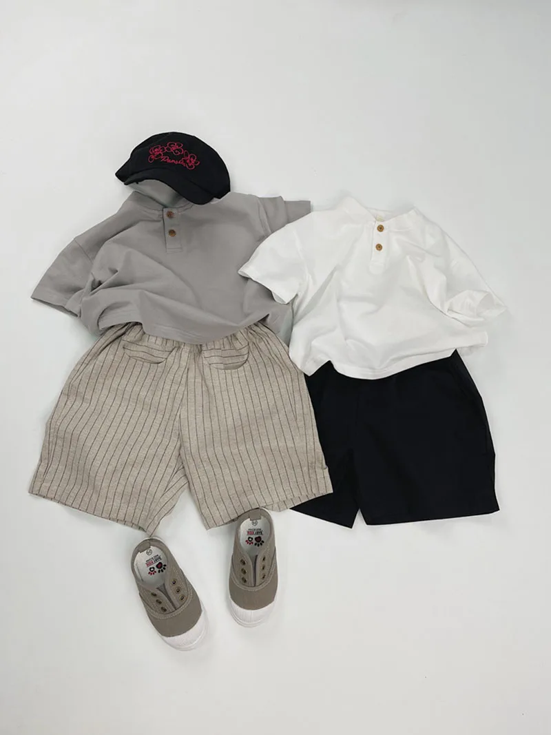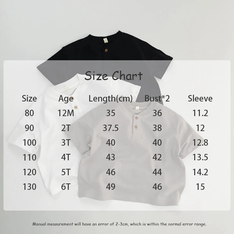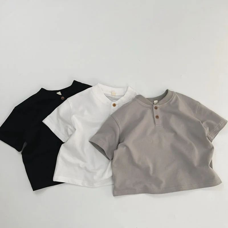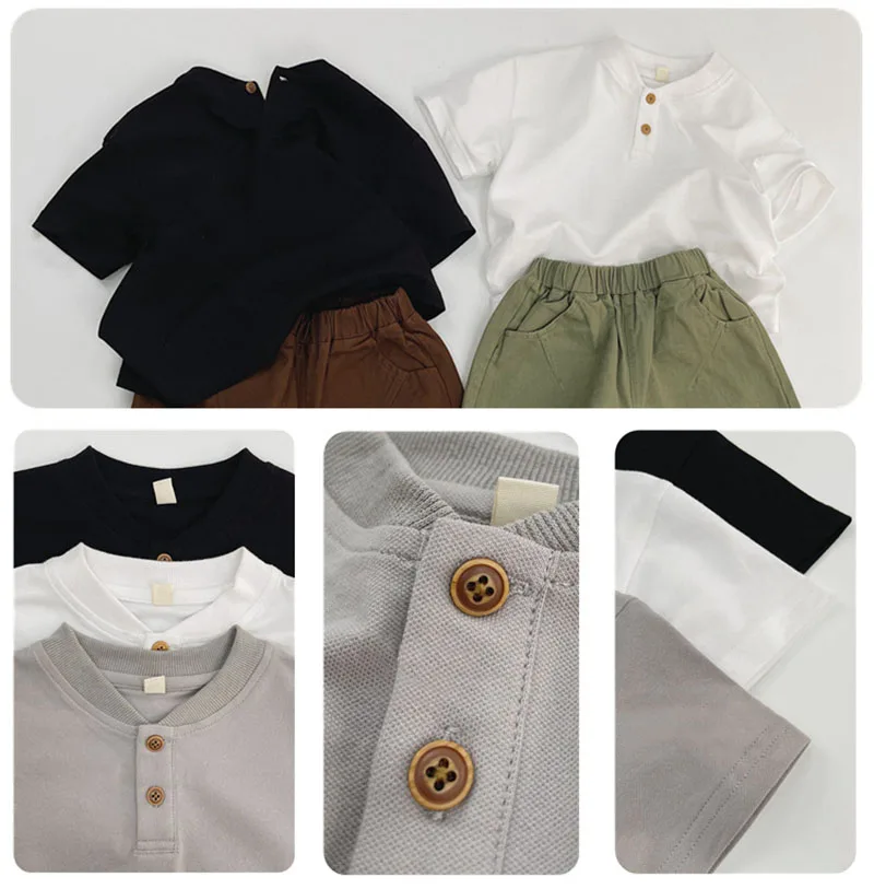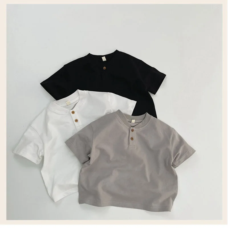 1.** Sólido minimalista - Estética de color **: Estas camisetas vienen en colores sólidos clásicos (negro, blanco, gris), presentando una apariencia simple pero elegante que combina fácilmente con varios pantalones, lo que las convierte en una opción versátil para los atuendos diarios de los niños.