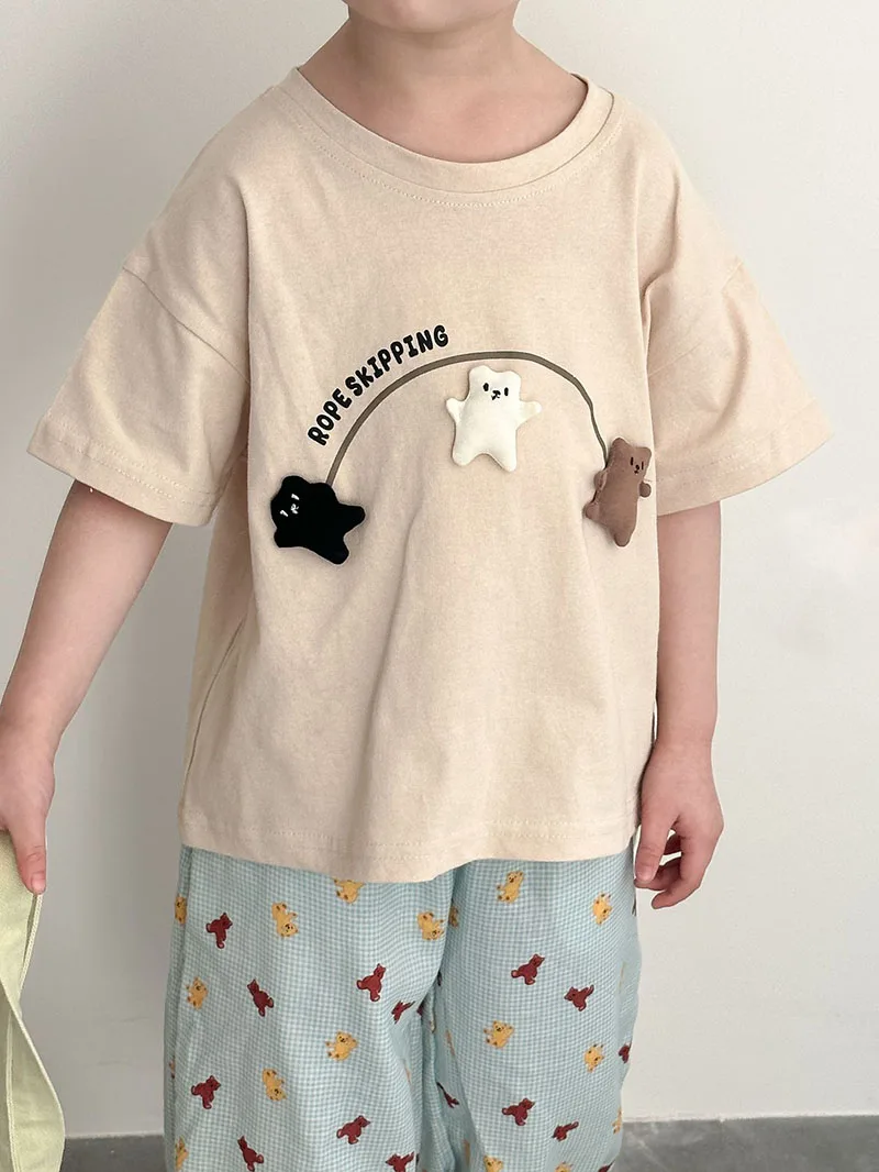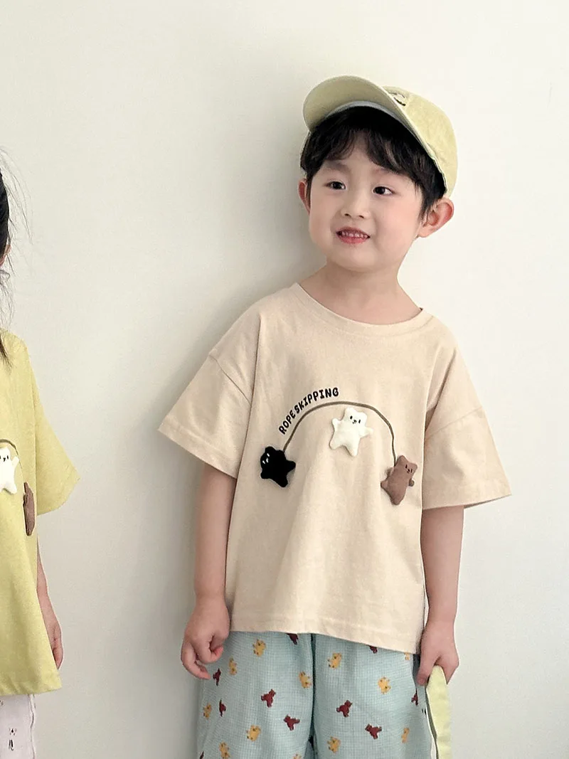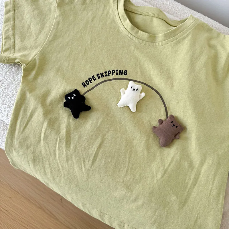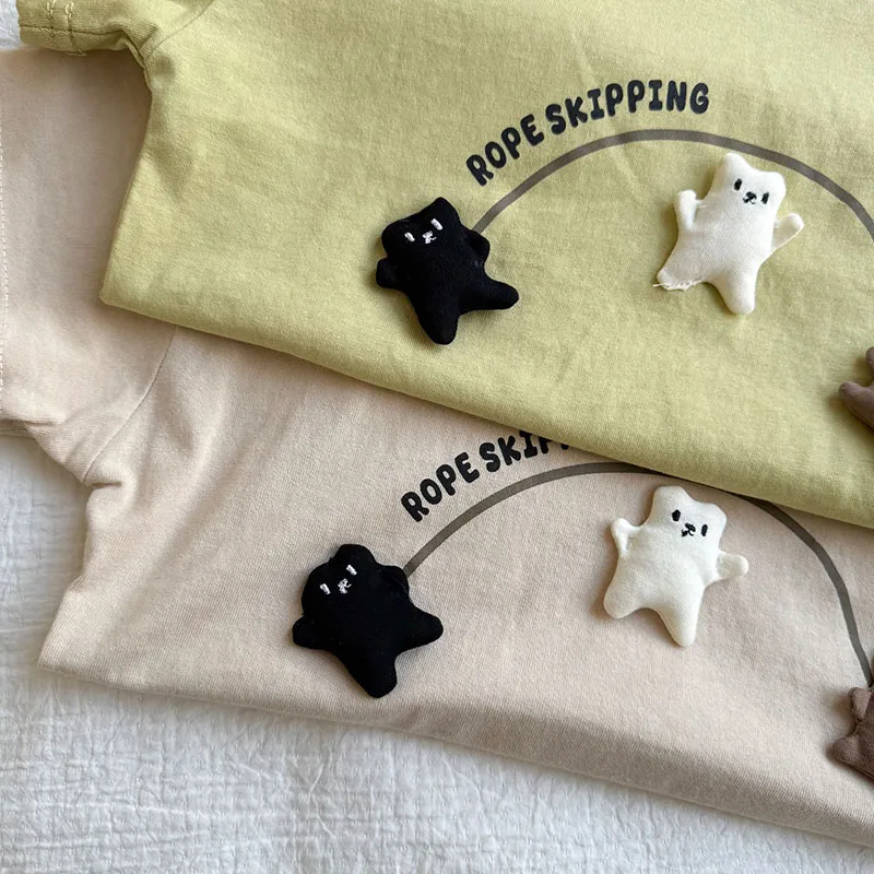 2.**Diseño lindo y creativo**: Con el texto "ROPE SKIPPING" y tres lindas figuras de ositos tridimensionales que saltan aparentemente con una cuerda, que está llena de diversión infantil y es muy llamativa.