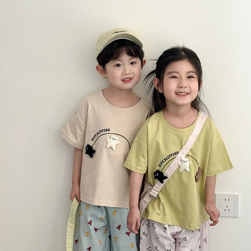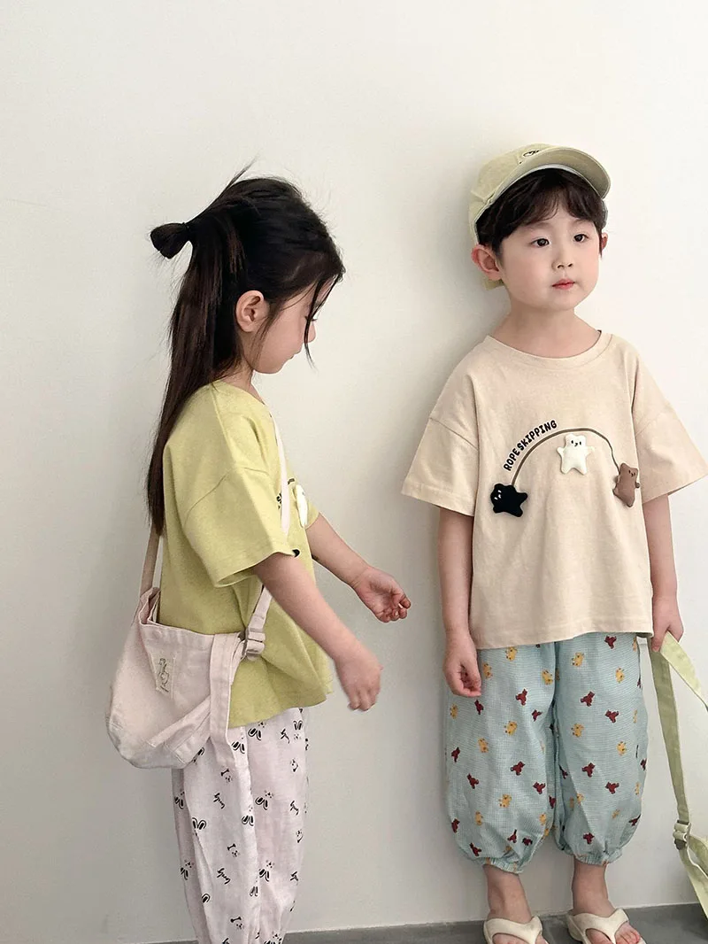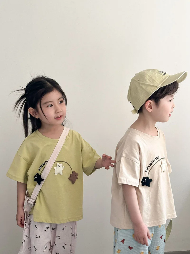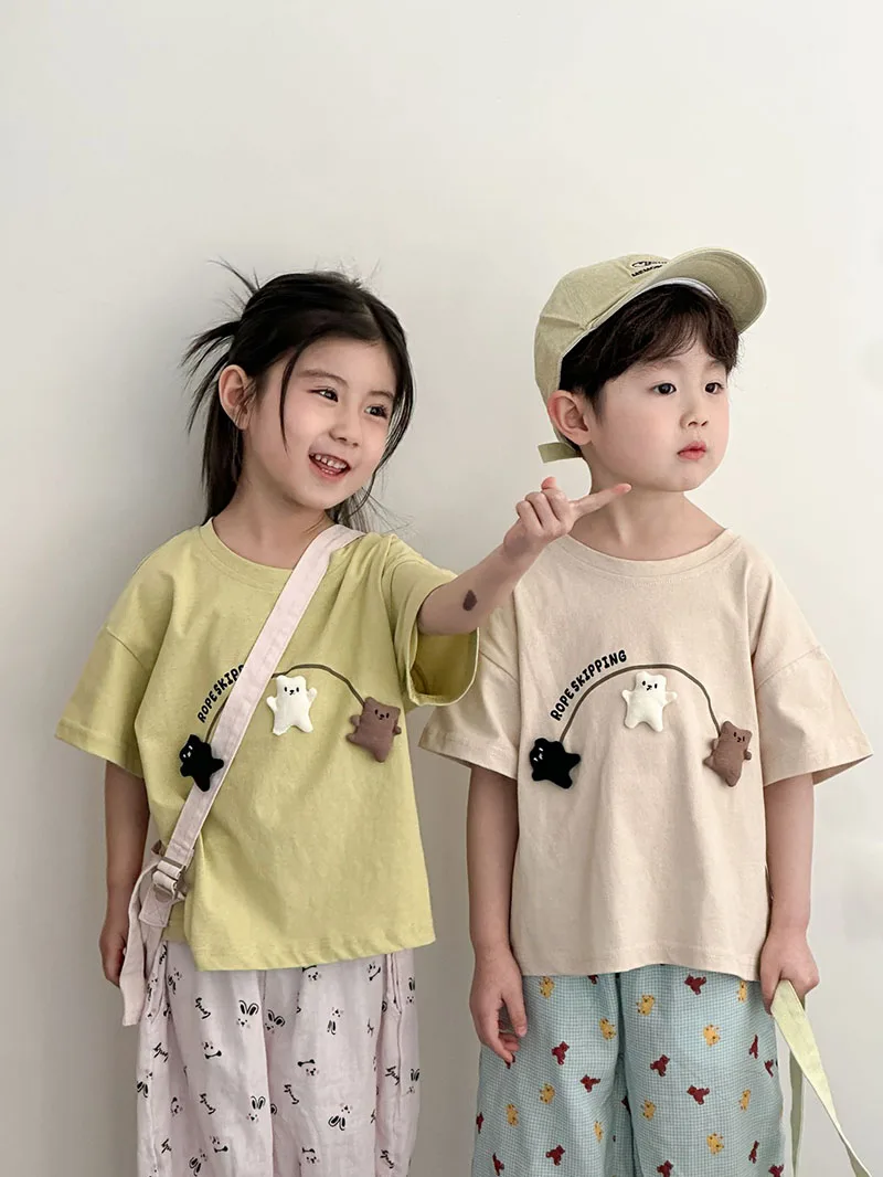 1.**Material de algodón suave**: Hechas de algodón 100% puro, estas camisetas son suaves, transpirables y agradables para la piel, lo que garantiza la comodidad de los niños durante los calurosos días de verano.