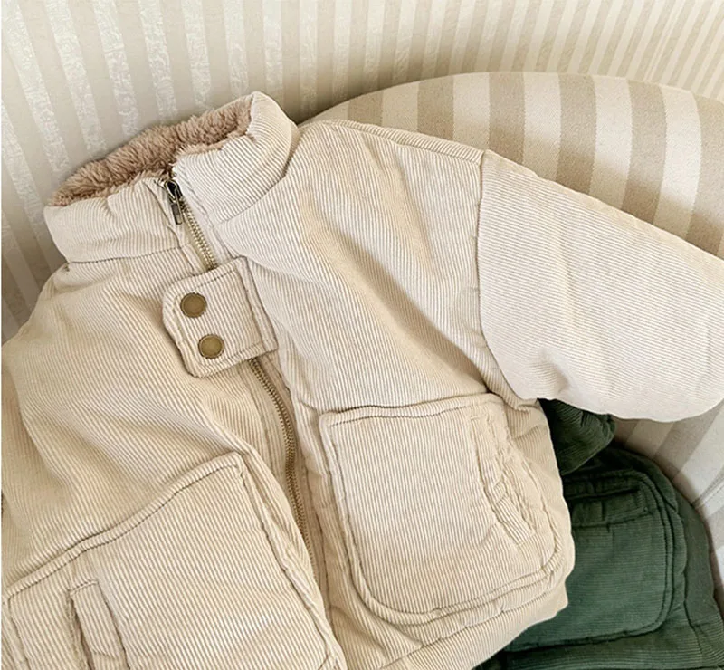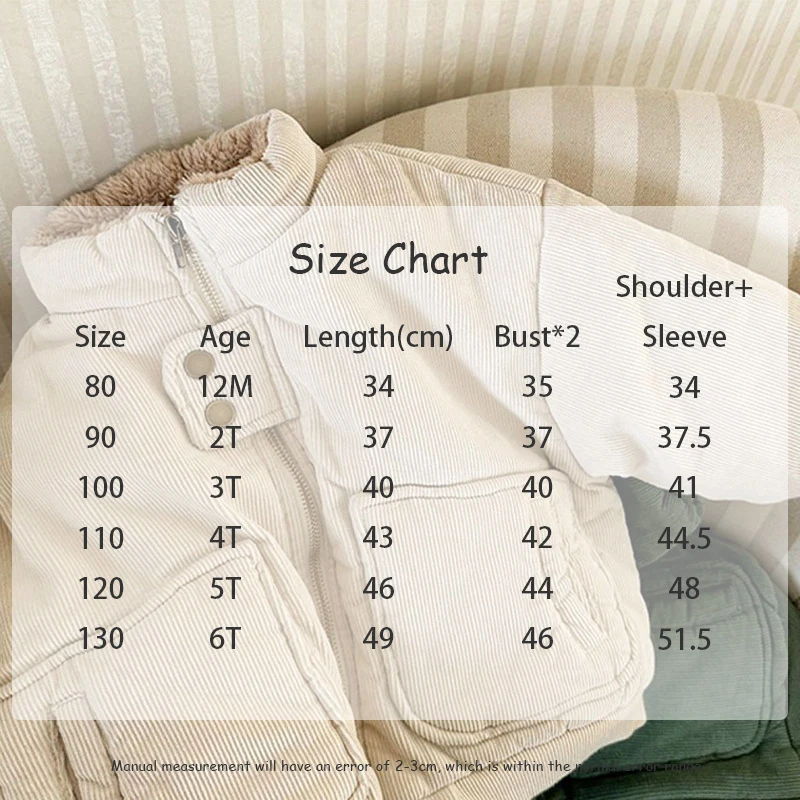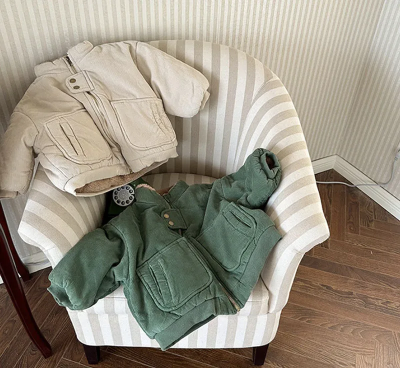 - **Tela de pana retro**: El clásico material de pana brinda una sensación nostálgica, capturando la esencia de la “moda vintage” para los niños.Destaca tanto en el uso diario como en ocasiones especiales.