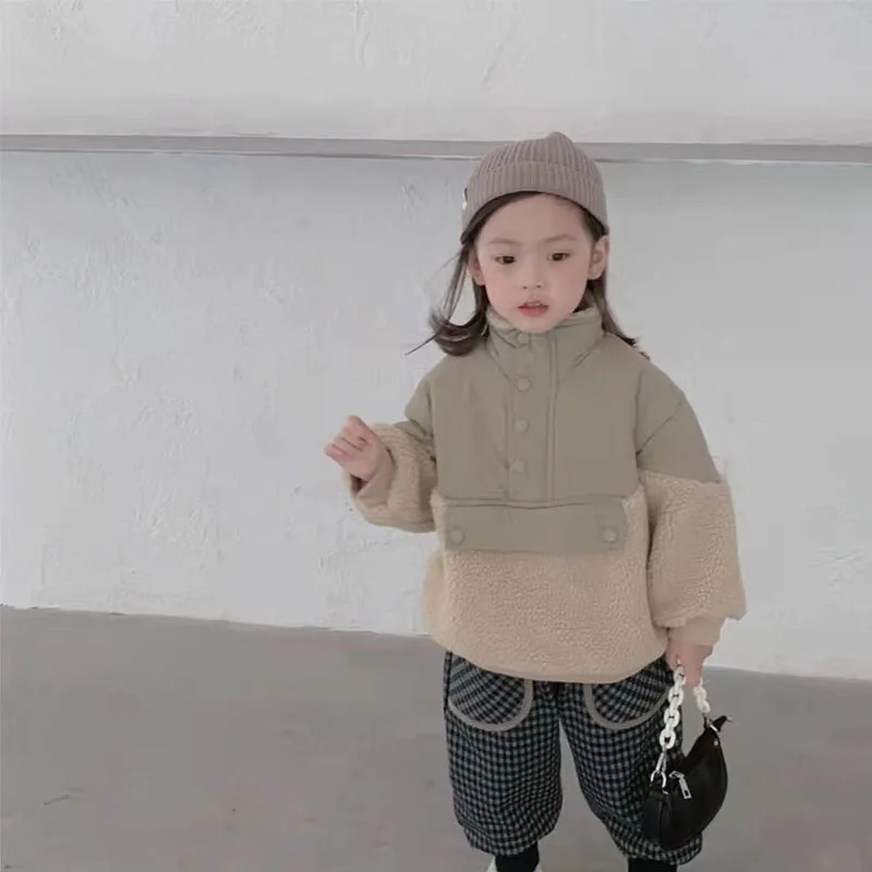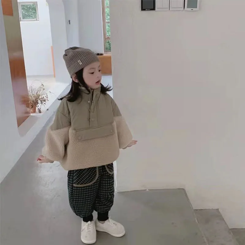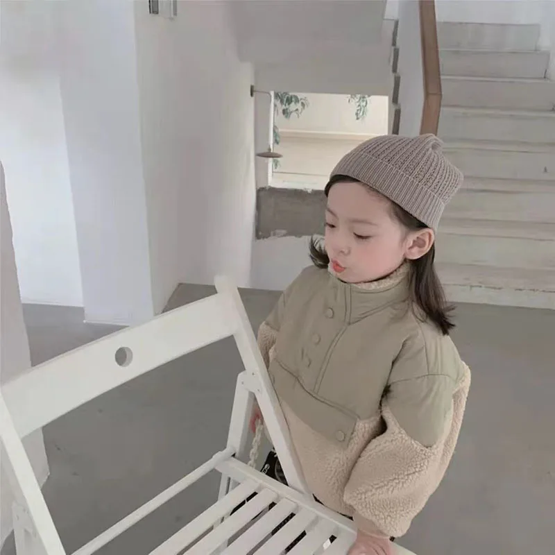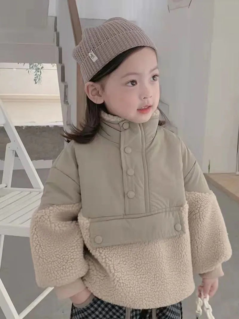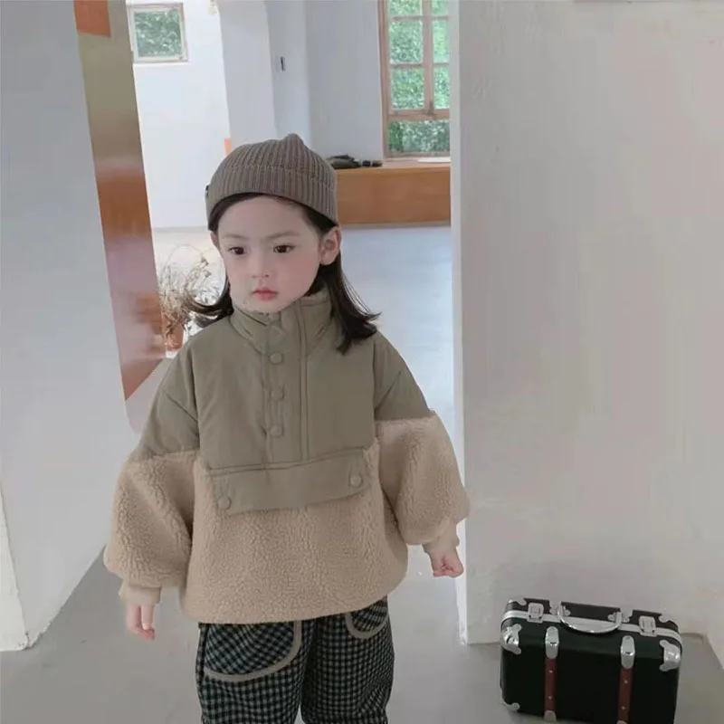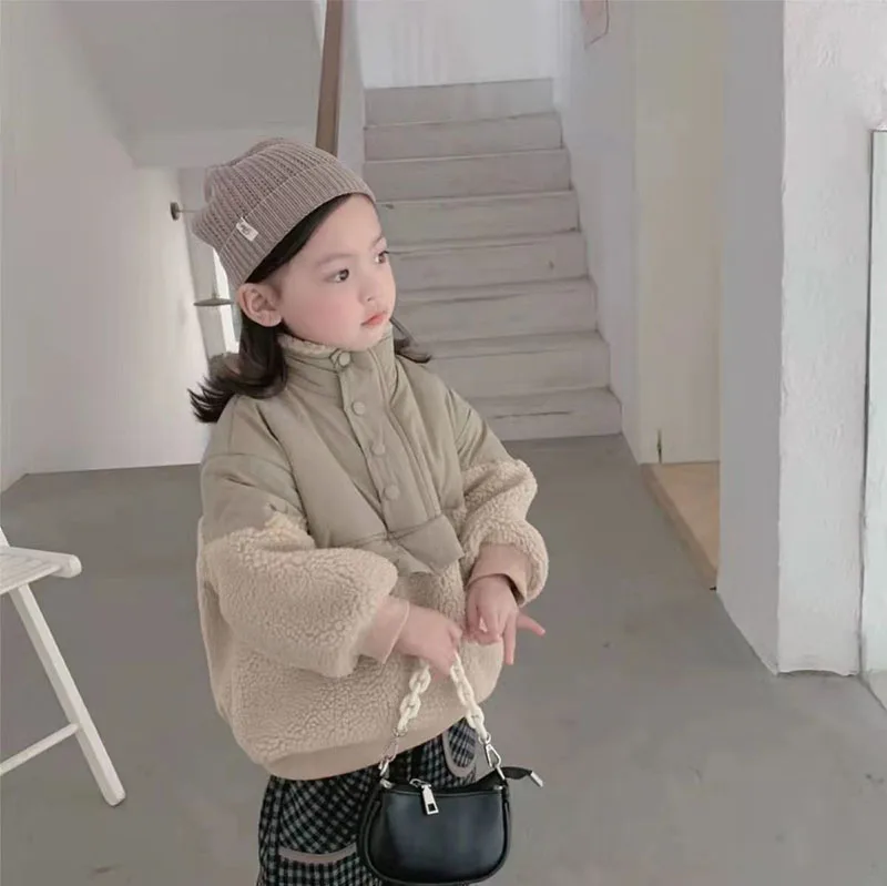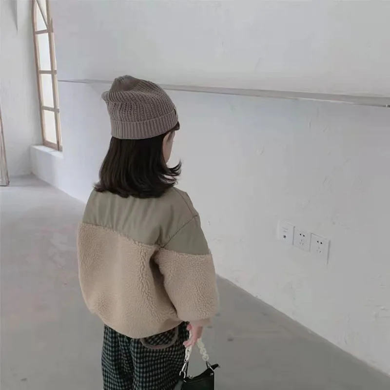 Comprar MILANCEL, nueva chaqueta acolchada de invierno para niños, abrigo de piel sintética de cordero con empalme de 1-5T para niñas, ropa cálida acolchada de lana holgada coreana para niños