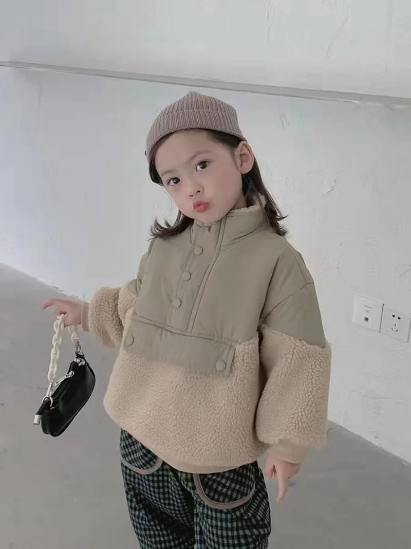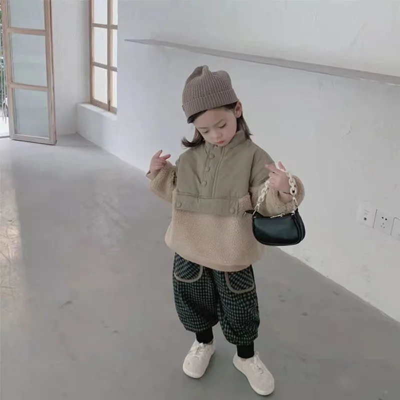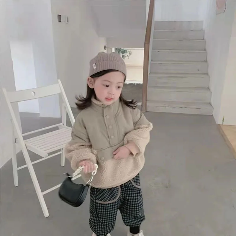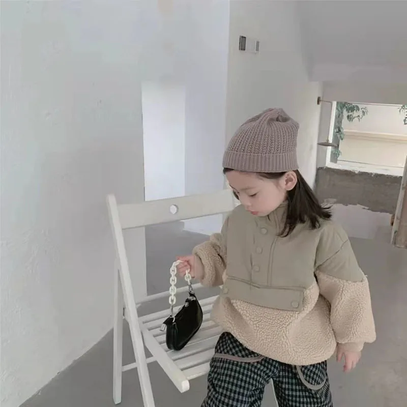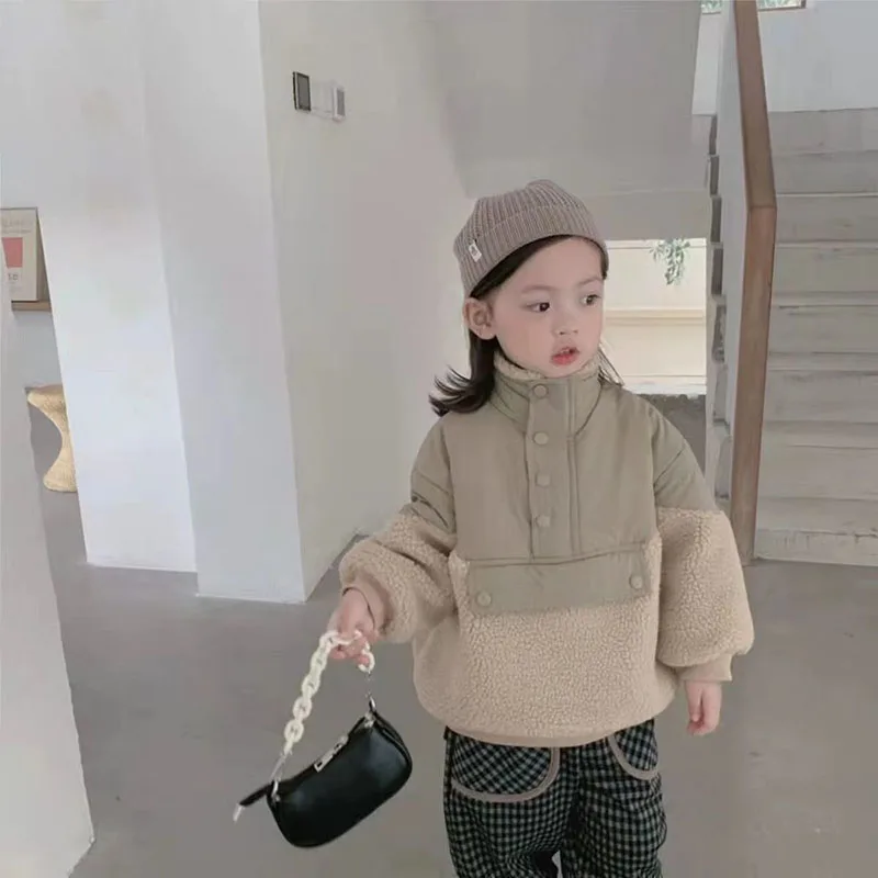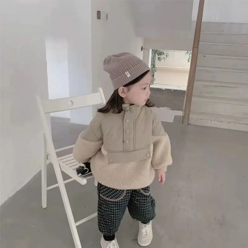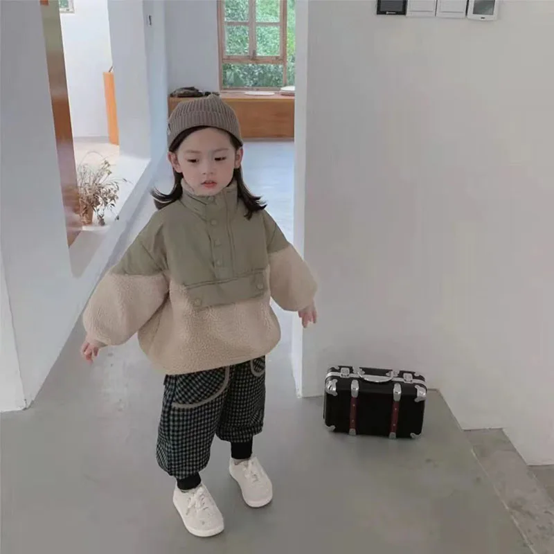 Comprar MILANCEL, nueva chaqueta acolchada de invierno para niños, abrigo de piel sintética de cordero con empalme de 1-5T para niñas, ropa cálida acolchada de lana holgada coreana para niños