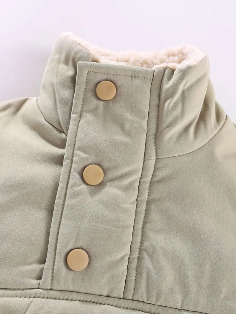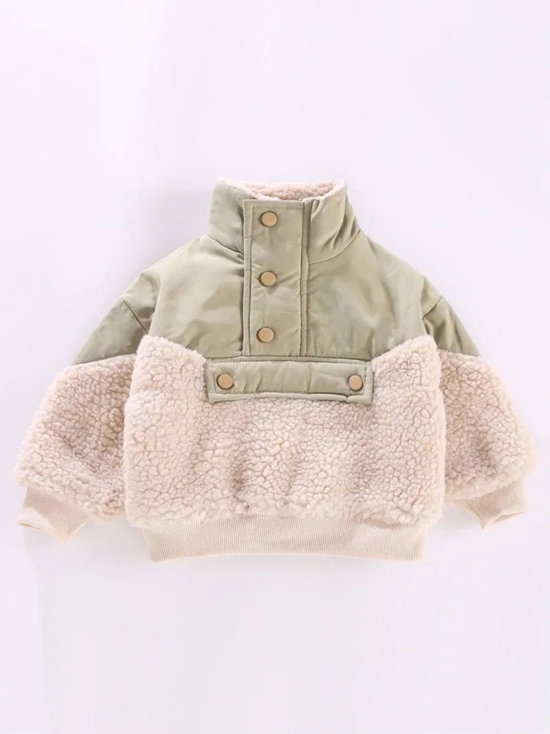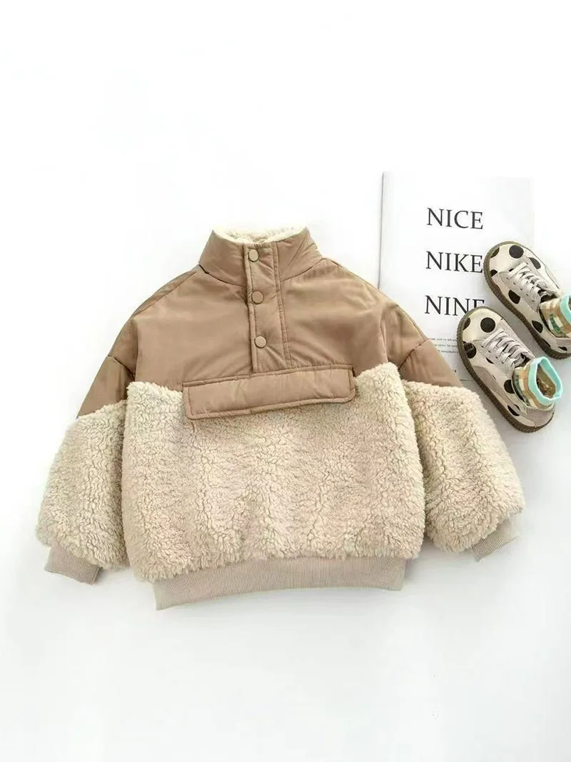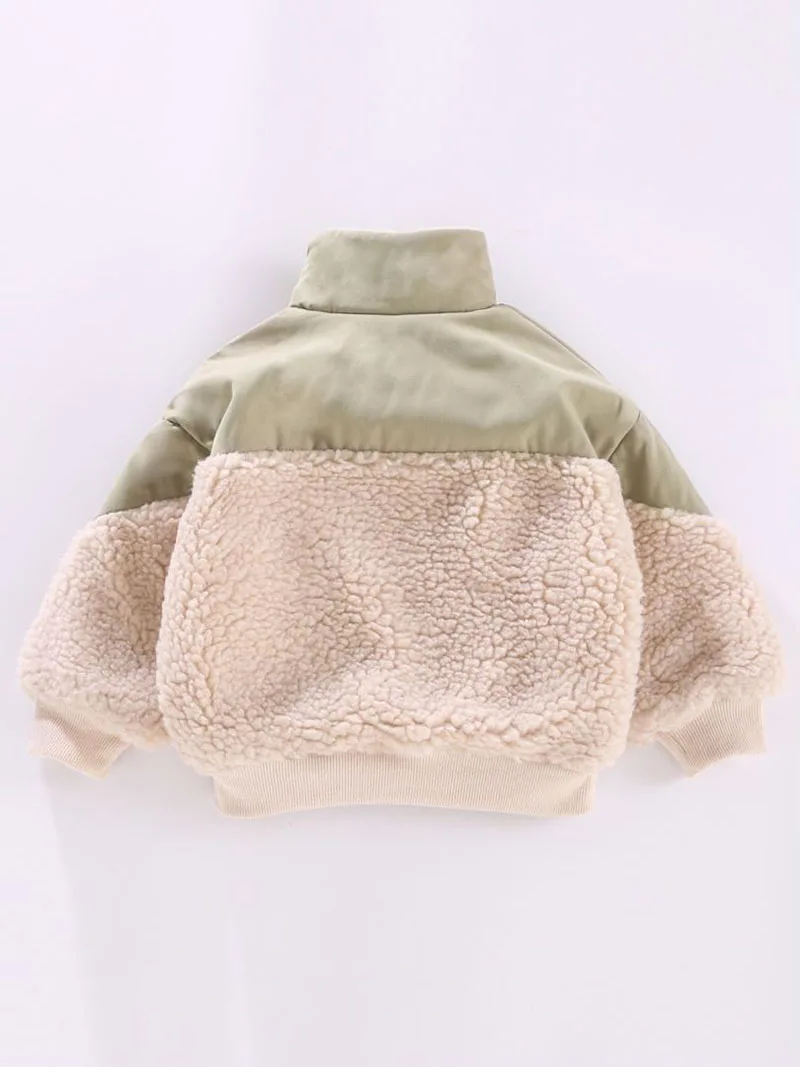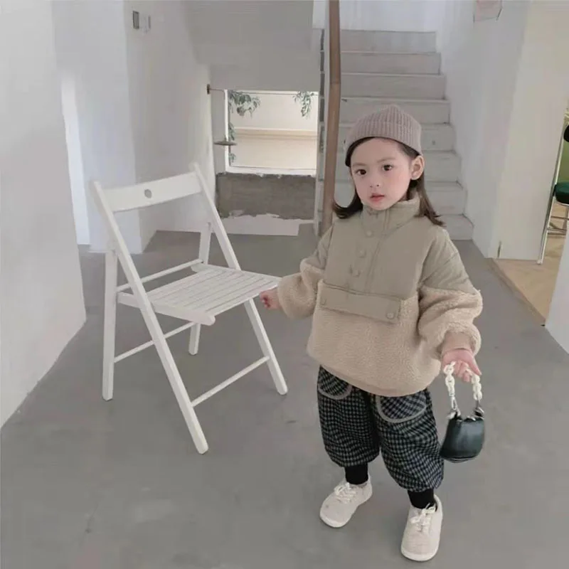 Comprar MILANCEL, nueva chaqueta acolchada de invierno para niños, abrigo de piel sintética de cordero con empalme de 1-5T para niñas, ropa cálida acolchada de lana holgada coreana para niños