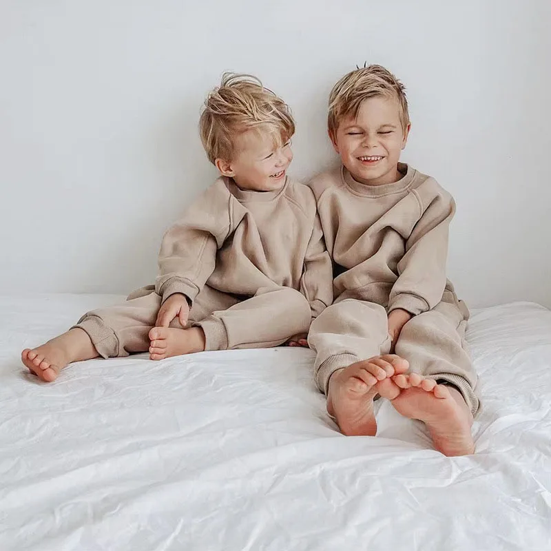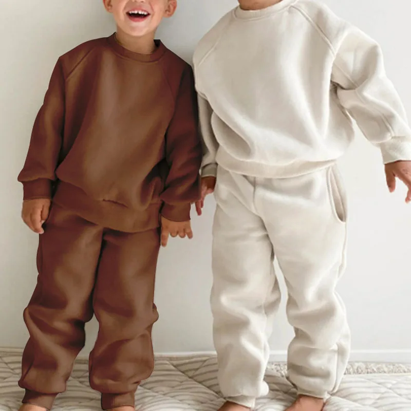3.**Estilo versátil**: Los diseños simples y neutros de las sudaderas y pantalones se pueden mezclar y combinar fácilmente con otras prendas de vestir del guardarropa de un niño.