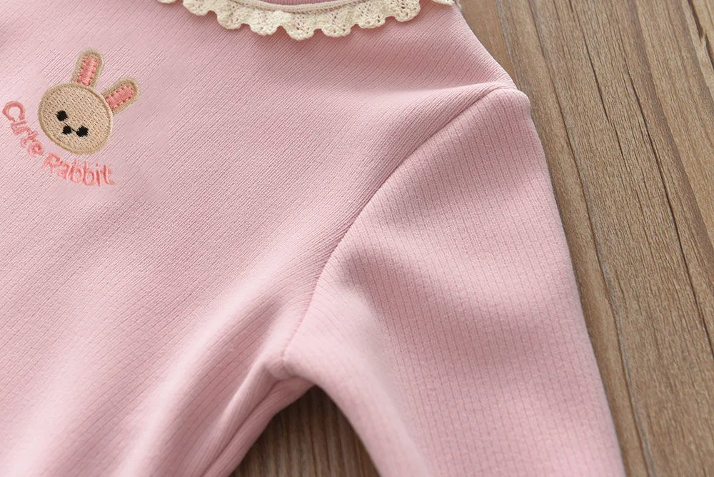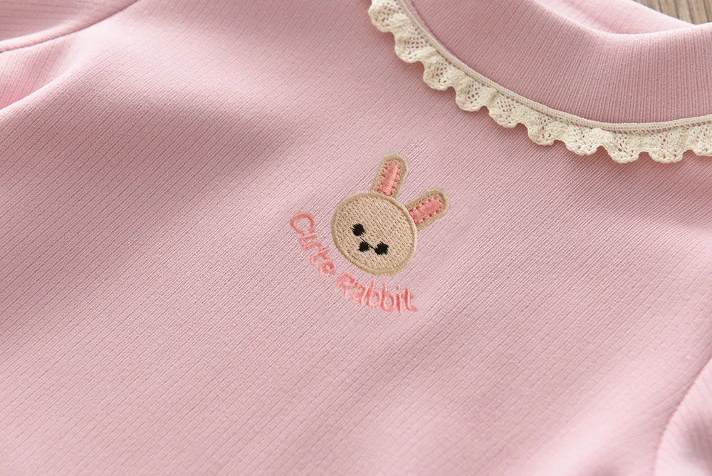 1.** Lindo bordado de conejo **: El adorable bordado de conejo con la frase "Lindo Conejo" agrega un toque dulce y encantador, atractivo para las niñas pequeñas y hace que la parte superior se destaque.