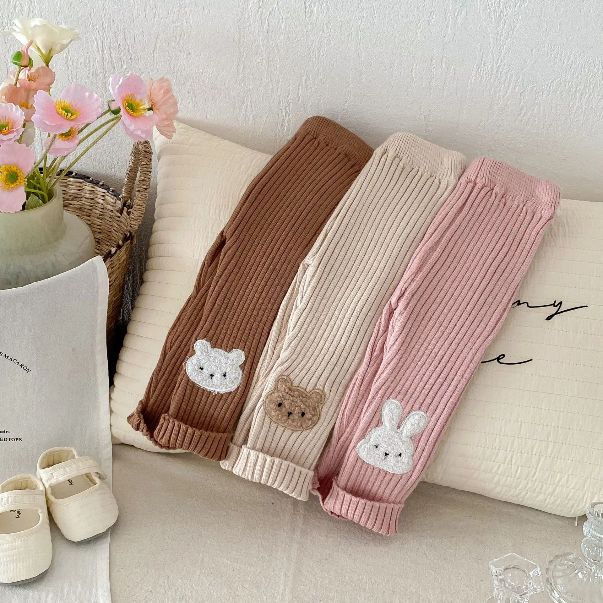 MILANCEL, nuevas mallas tejidas de otoño para niños de 0 a 5 años, pantalones ajustados con bonitos dibujos para niñas, pantalones con tiras para bebés