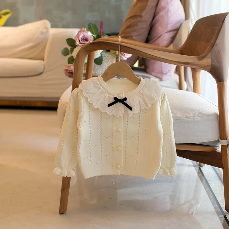 Comprar MILANCEL, nuevo cárdigan tejido de otoño para niños, 1-6T, lazo de encaje, suéter calado para niñas, prendas de vestir finas y holgadas para niños, Tops