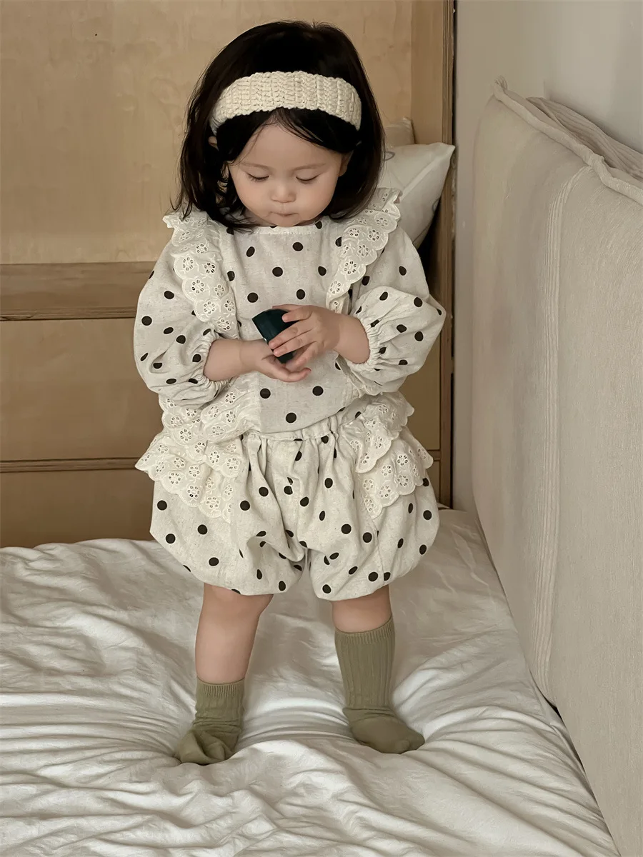 Comprar MILANCEL nuevo conjunto de ropa de bebé de primavera 9M-3T niñas Linda camisa de encaje + Bloomer prendas de vestir de puntos para niños pequeños 2 uds