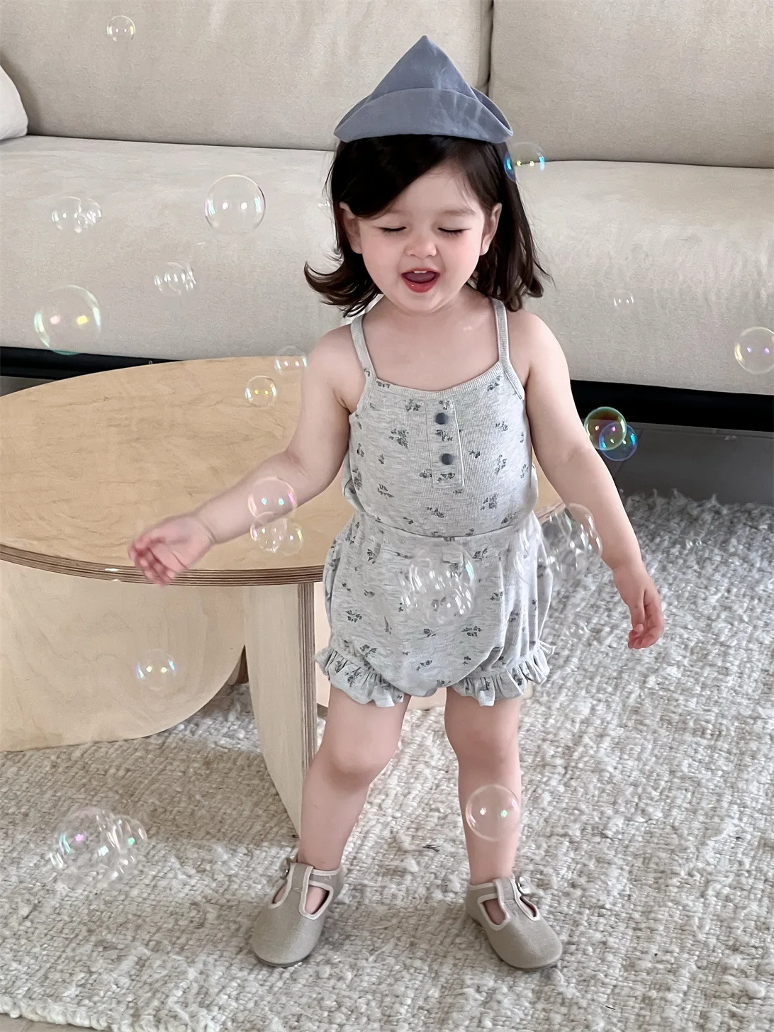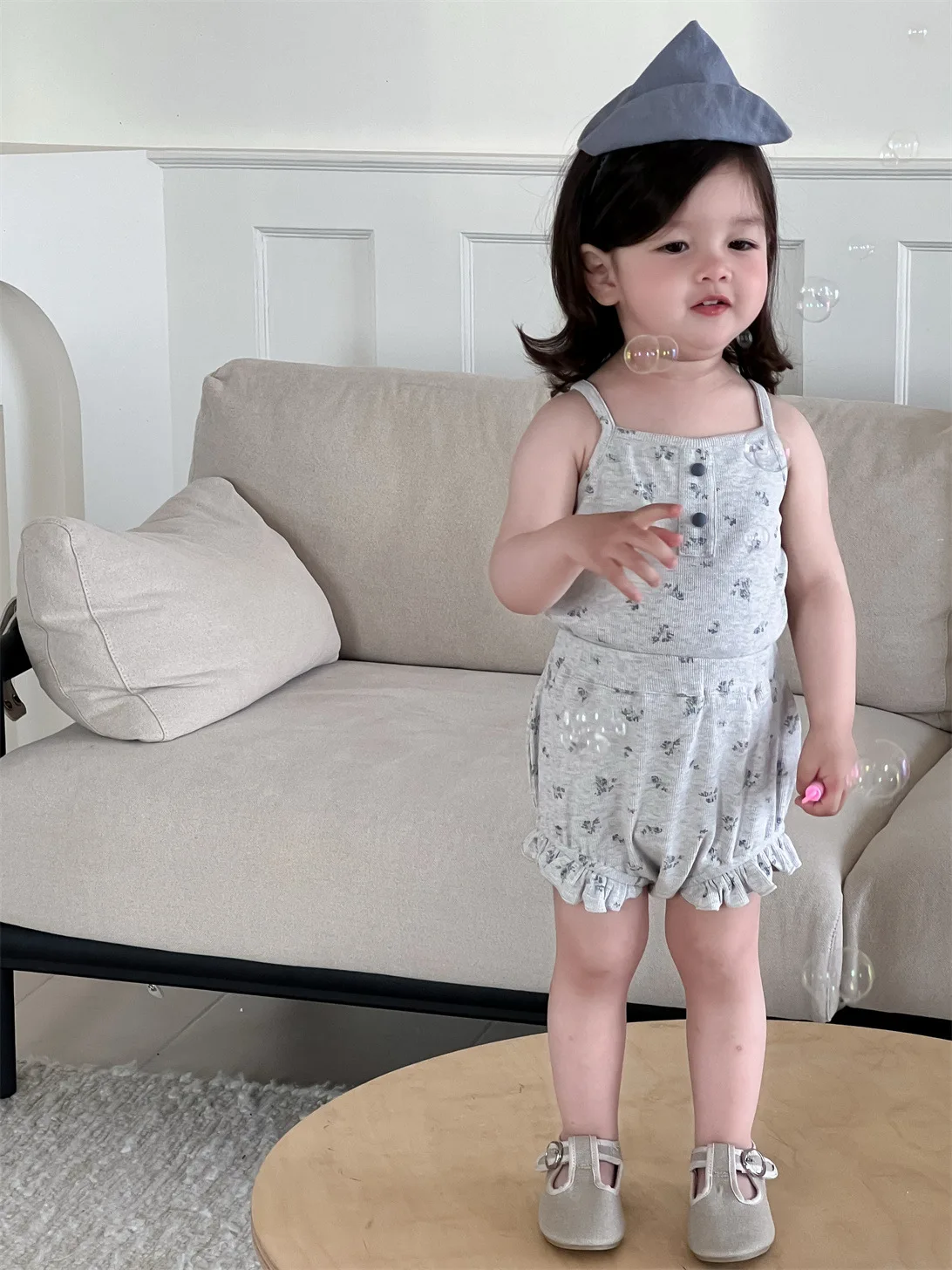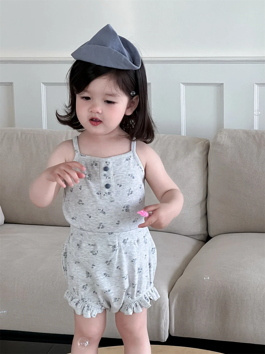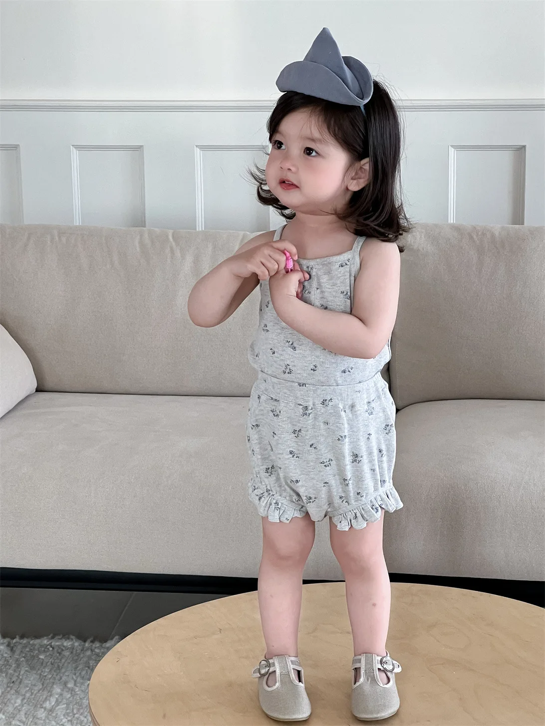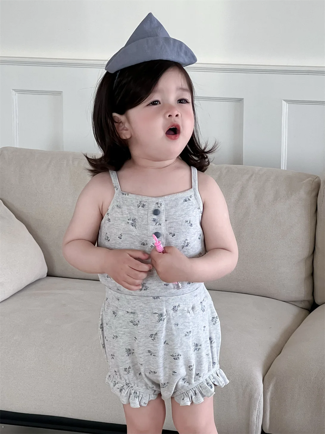 El conjunto presenta un encantador top halter combinado con pantalones cortos con volantes, que irradia un ambiente lindo y moderno.Los delicados detalles de volantes añaden un toque elegante, haciendo que tu niña se destaque sin esfuerzo.