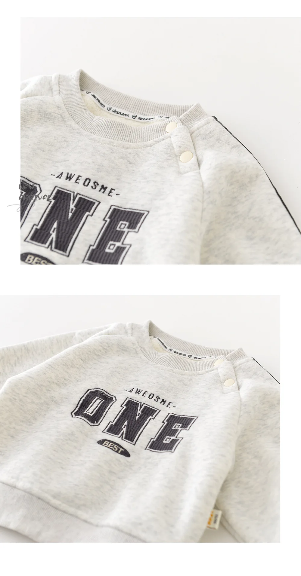 - **Aspecto deportivo vintage**: Con atrevidos estampados de letras y rayas laterales, el conjunto tiene un estilo deportivo retro que es a la vez elegante y atemporal.Es perfecto para crear un look dinámico y clásico para los bebés.