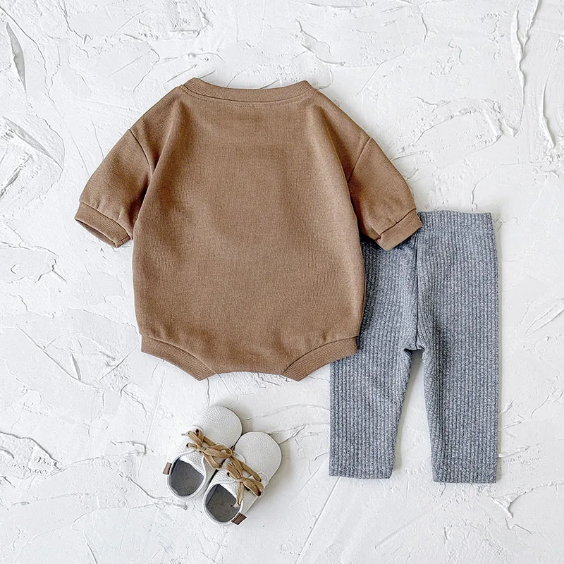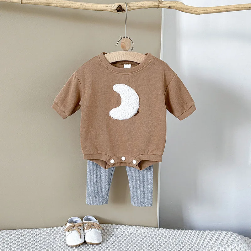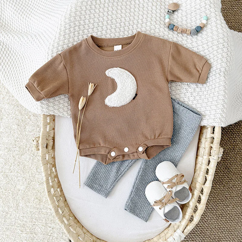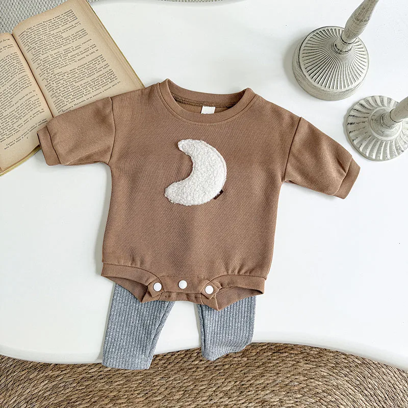 Comprar MILANCEL, nuevo conjunto de ropa de otoño para bebé de 0 a 12M, mono holgado bonito para niñas, mono marrón Luna + Leggings grises, traje coreano para niños, 2 uds.