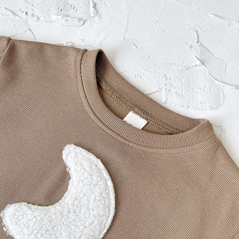 El tejido de punto tipo gofre con parche de luna crea una apariencia acogedora, retro y elegante, perfecta para salidas de otoño y fotografías de la siesta.