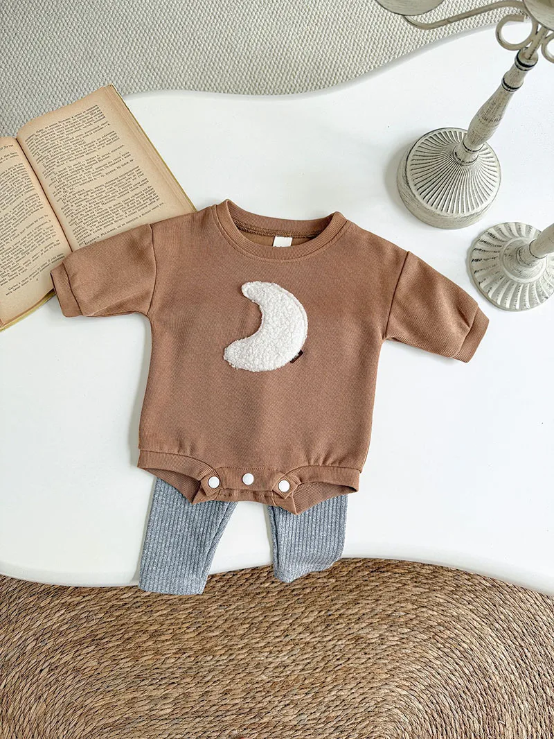 Comprar MILANCEL, nuevo conjunto de ropa de otoño para bebé de 0 a 12M, mono holgado bonito para niñas, mono marrón Luna + Leggings grises, traje coreano para niños, 2 uds.