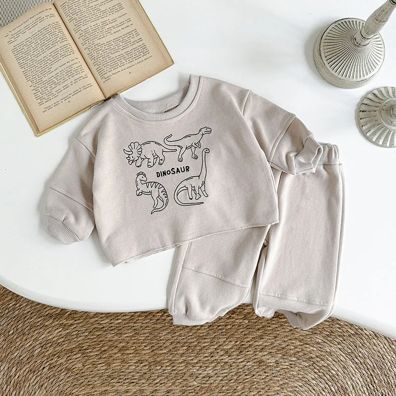 MILANCEL nuevo conjunto de ropa de otoño para bebé 1-18M dinosaurio de dibujos animados niñas pequeñas Sudadera con capucha + Pantalones lindo suelto versión coreana traje infantil