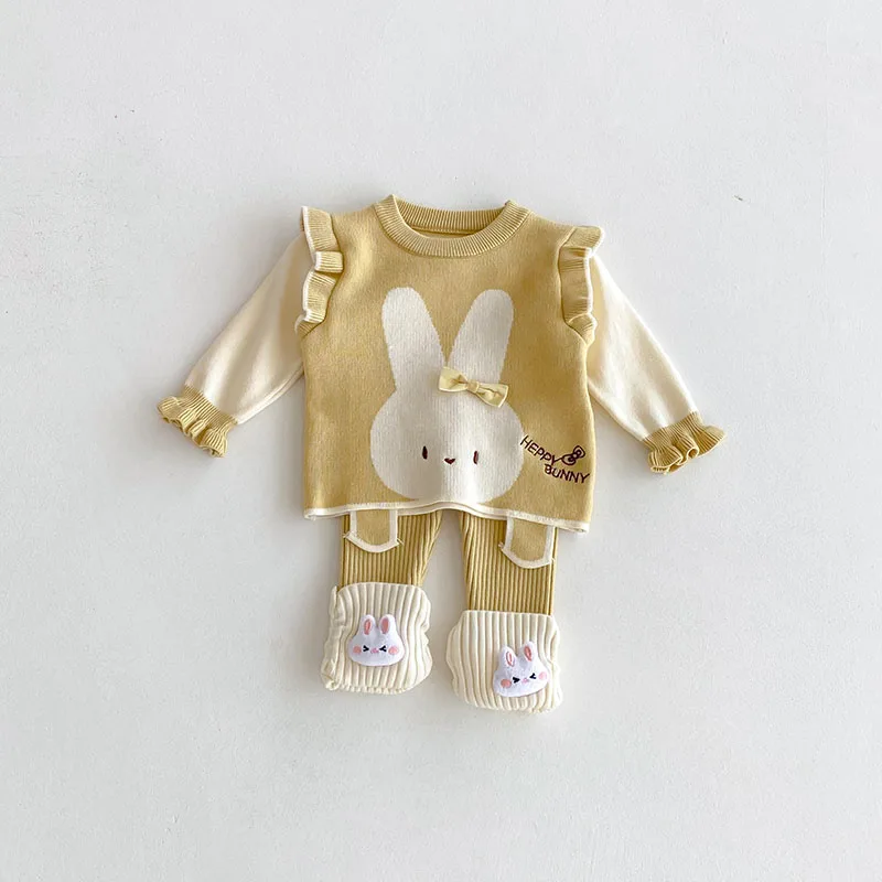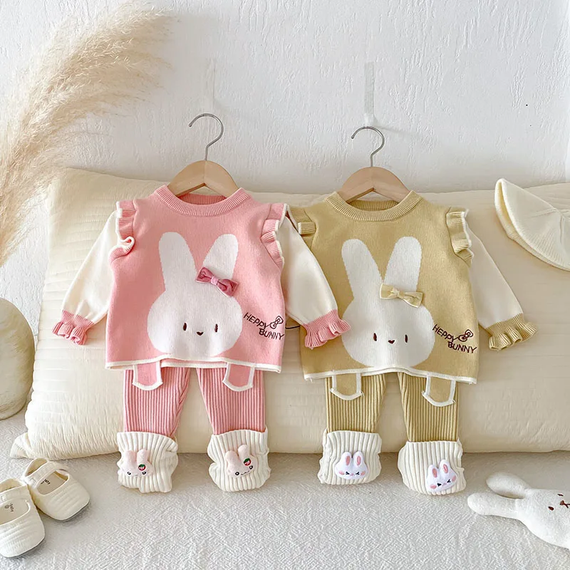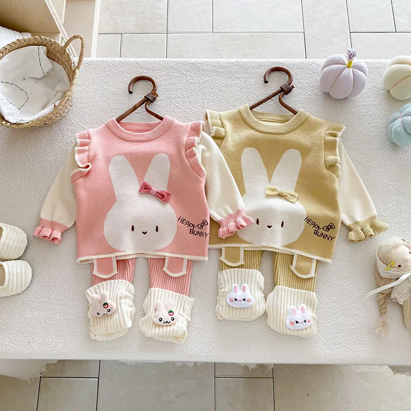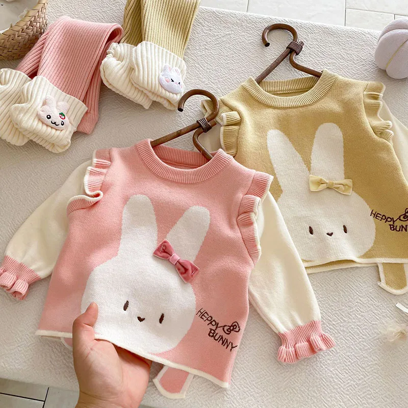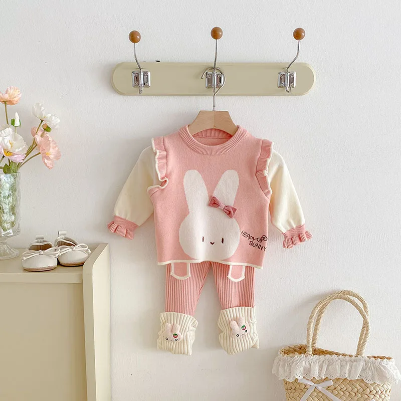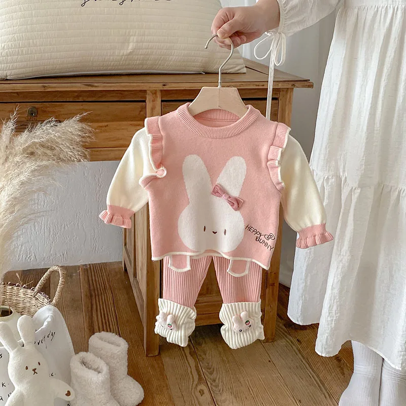 Comprar MILANCEL, nuevo conjunto de ropa de otoño para bebé, 6-24M, bloque de Color de conejito de dibujos animados, camisa para niñas pequeñas + Pantalones, suéter bonito infantil, 2 uds.