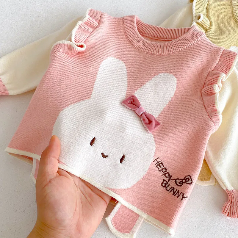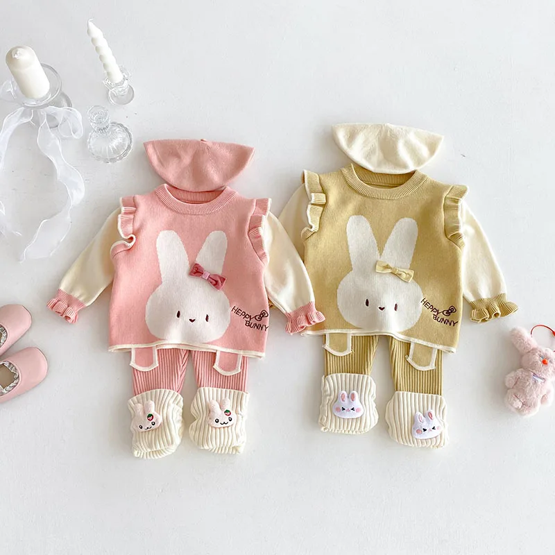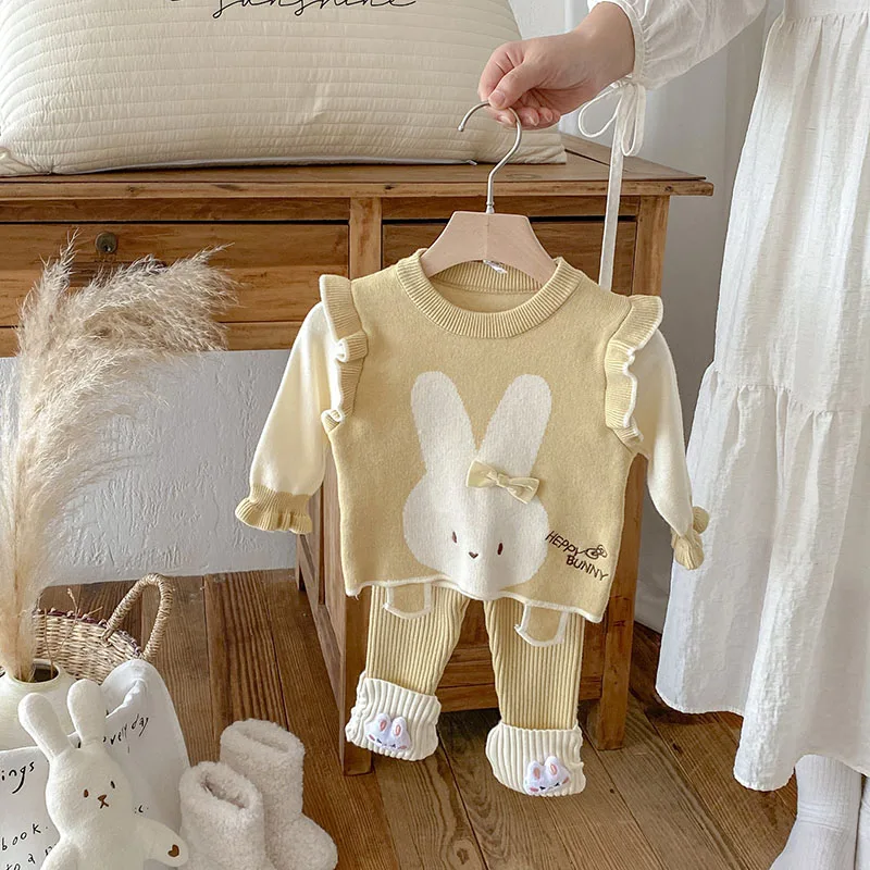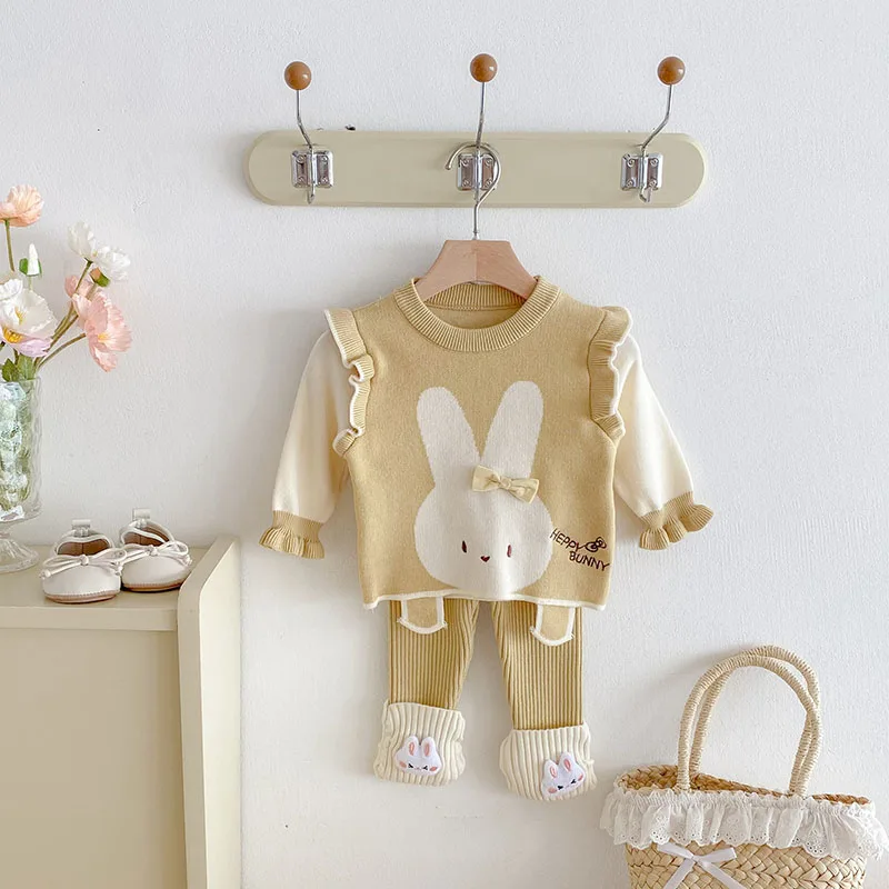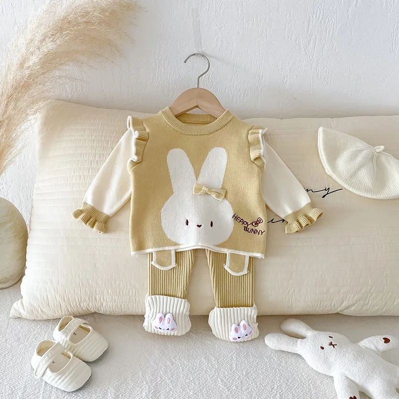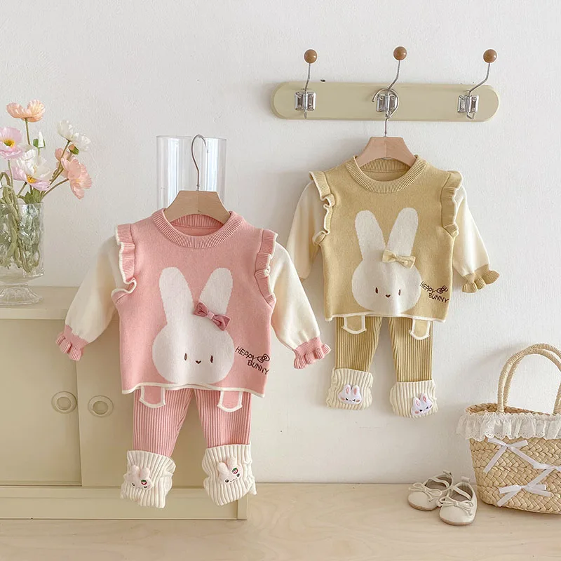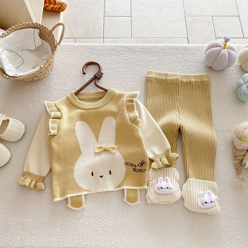 Comprar MILANCEL, nuevo conjunto de ropa de otoño para bebé, 6-24M, bloque de Color de conejito de dibujos animados, camisa para niñas pequeñas + Pantalones, suéter bonito infantil, 2 uds.