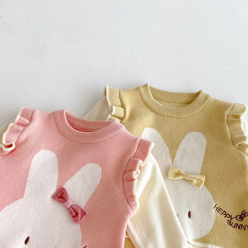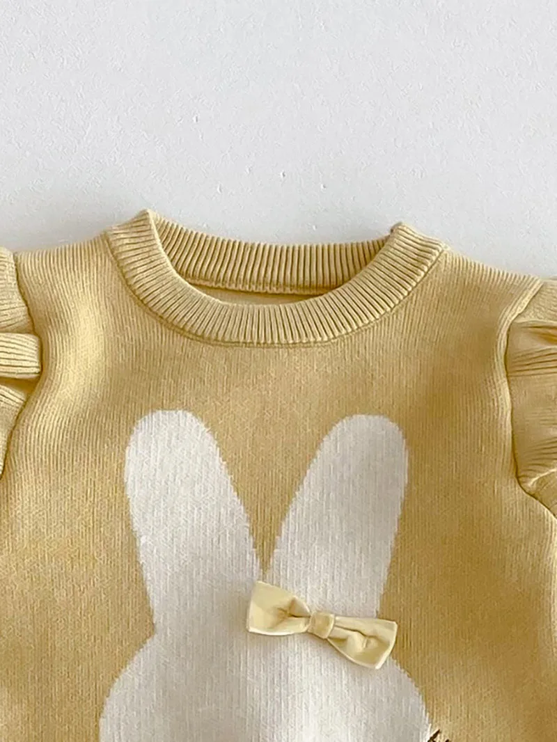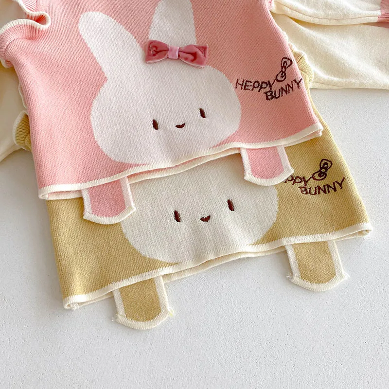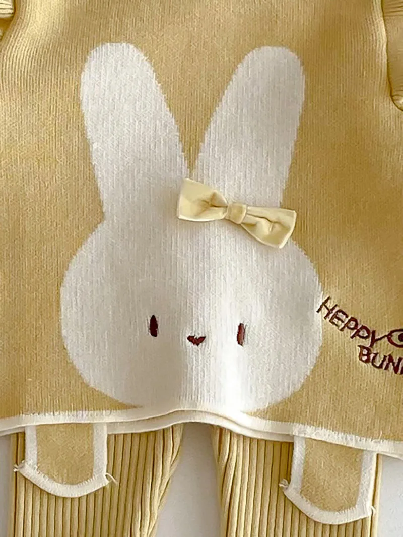El lindo patrón de conejo con lazo en 3D se une a la ola global de "moda kawaii" en ropa infantil.Como se ve en las tendencias de Google, *“ropa de bebé con conejito”* sigue siendo un término de búsqueda superior por su atractivo caprichoso y familiar, perfecto para el uso diario o para sesiones de fotos de bebés.