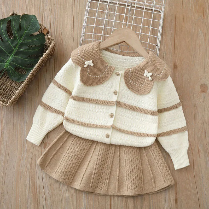 La combinación de cárdigan + falda/pantalones se puede usar como conjunto o mezclar con otras piezas, maximizando la flexibilidad de estilo para padres ocupados.