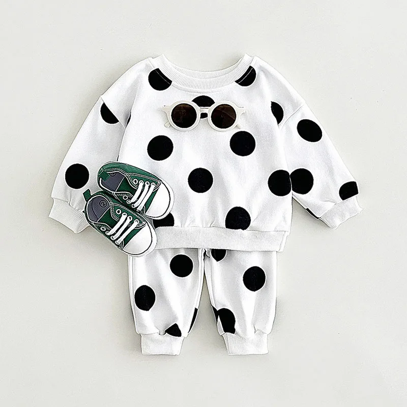 Comprar MILANCEL, nuevo conjunto de ropa de primavera para bebé, traje con capucha de dos piezas con puntos bonitos para niños pequeños, traje de ocio suelto para niñas