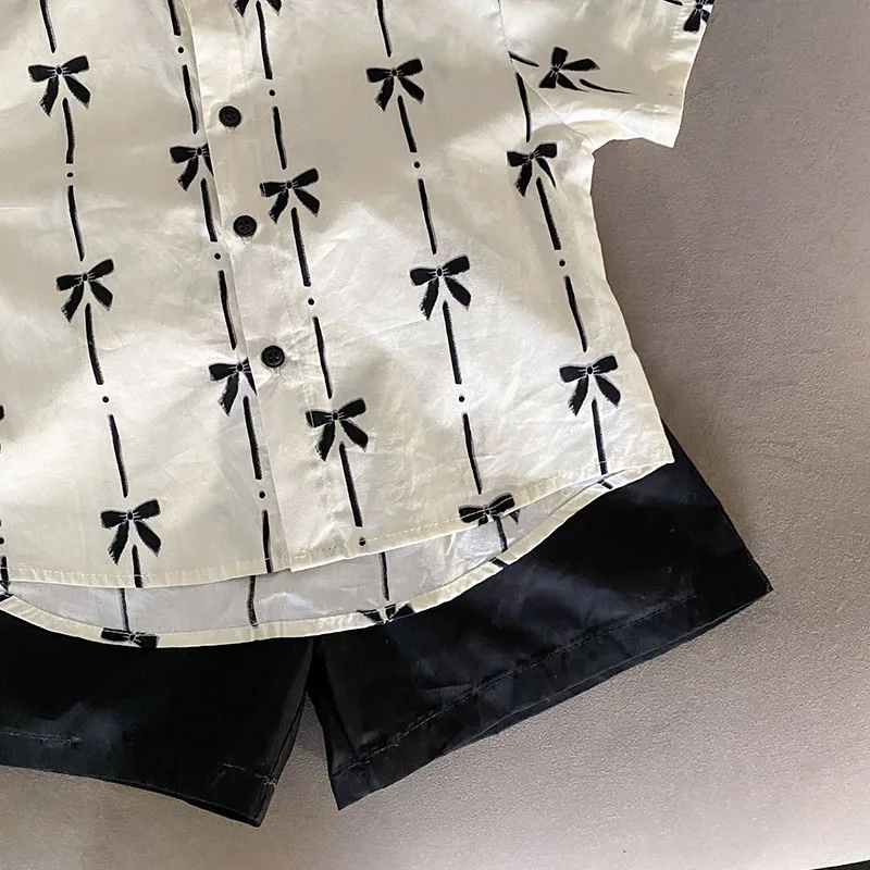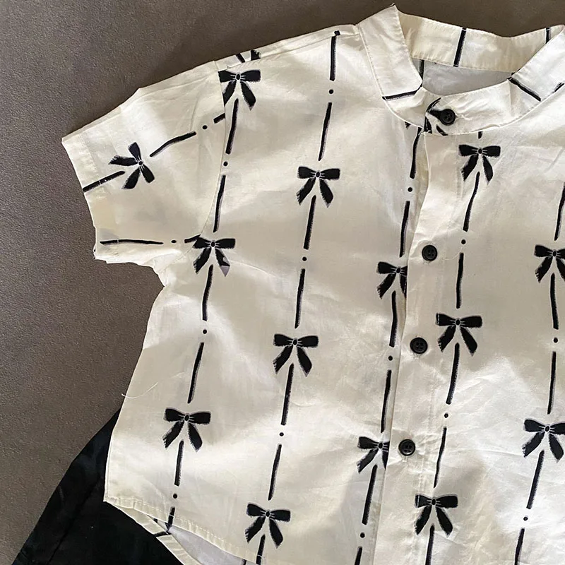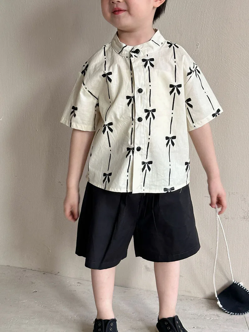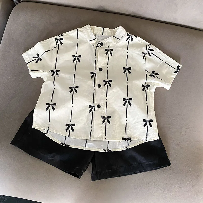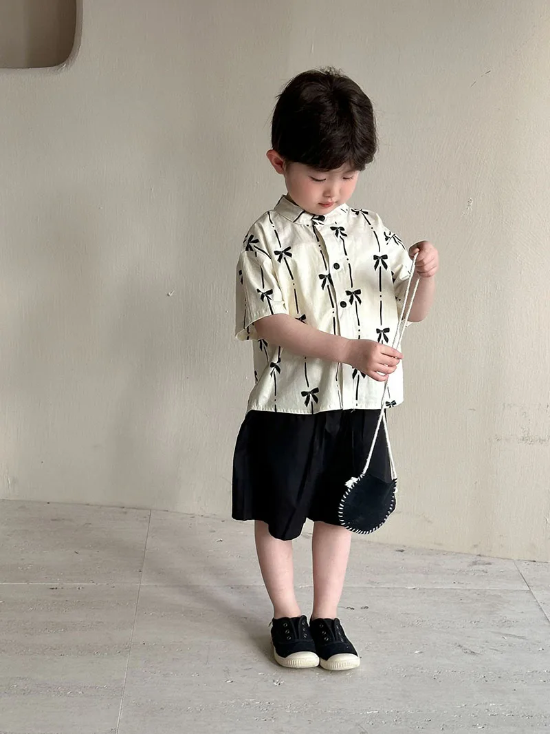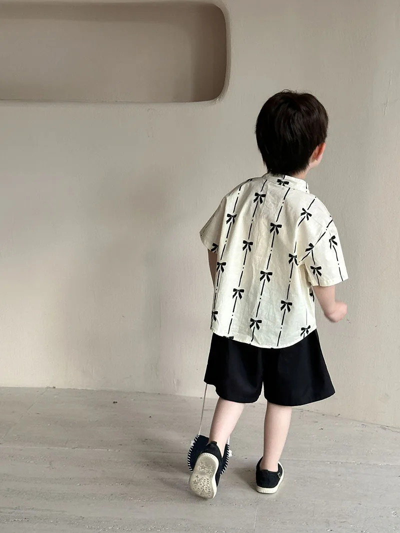 El conjunto del niño incluye una camisa de manga corta y un par de pantalones cortos.La camisa está confeccionada con materiales de alta calidad que son suaves para la piel.Tiene un diseño sencillo pero elegante con un cuello y botones clásicos, lo que facilita ponerse y quitarse.Los pantalones cortos están diseñados para brindar comodidad y durabilidad, con una cinturilla elástica que proporciona un ajuste cómodo sin restringir el movimiento.