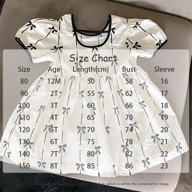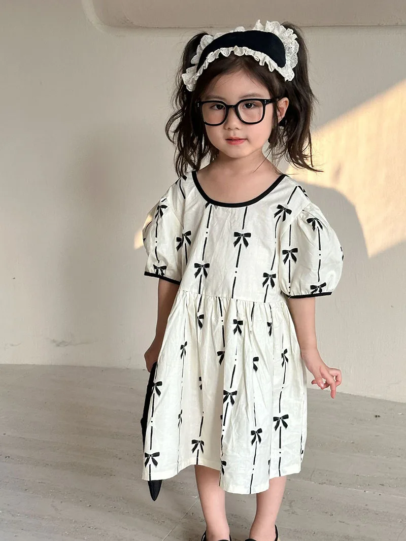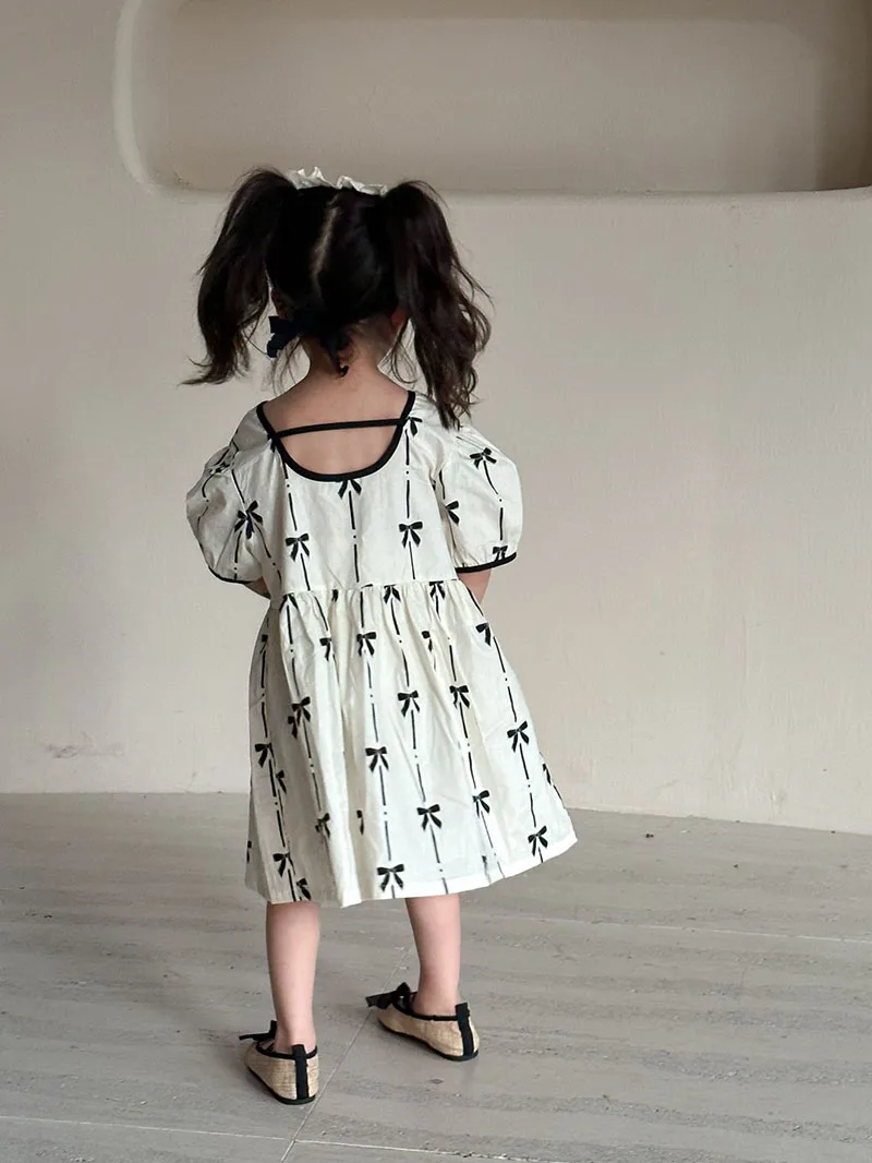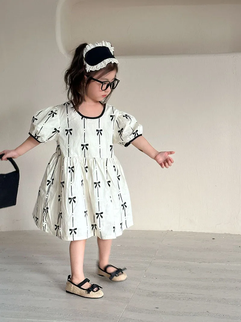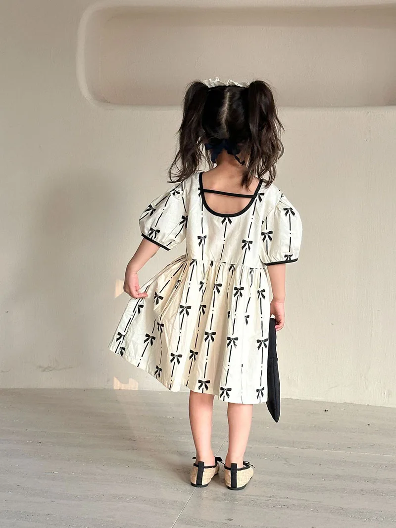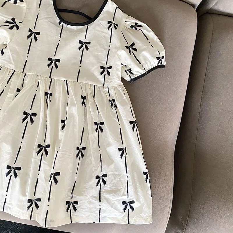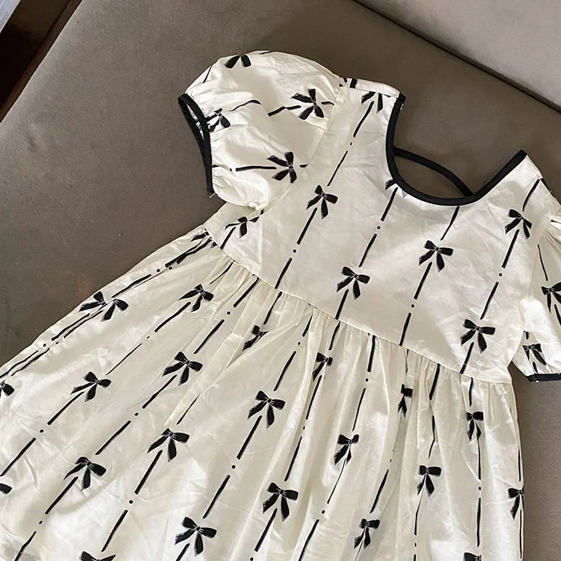 El vestido de niña es una delicia absoluta.Confeccionado con un tejido suave y transpirable, garantiza la máxima comodidad para usarlo durante todo el día.El vestido presenta una hermosa combinación de colores que es a la vez llamativa y dulce.Con su patrón único, añade un toque de alegría y elegancia.La decoración con lazo en el pecho realza el factor general de ternura, haciéndola parecer una verdadera princesa.