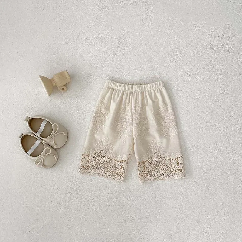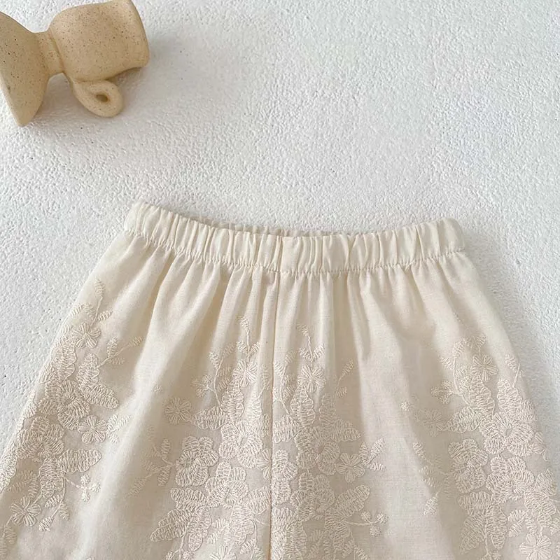El encaje y el bordado se ven realmente hermosos. Talla un poco pequeña, queda ajustada para una altura de 96 cm, sin espacio extra. Para un niño de constitución media, la banda elástica queda un poco ajustada.