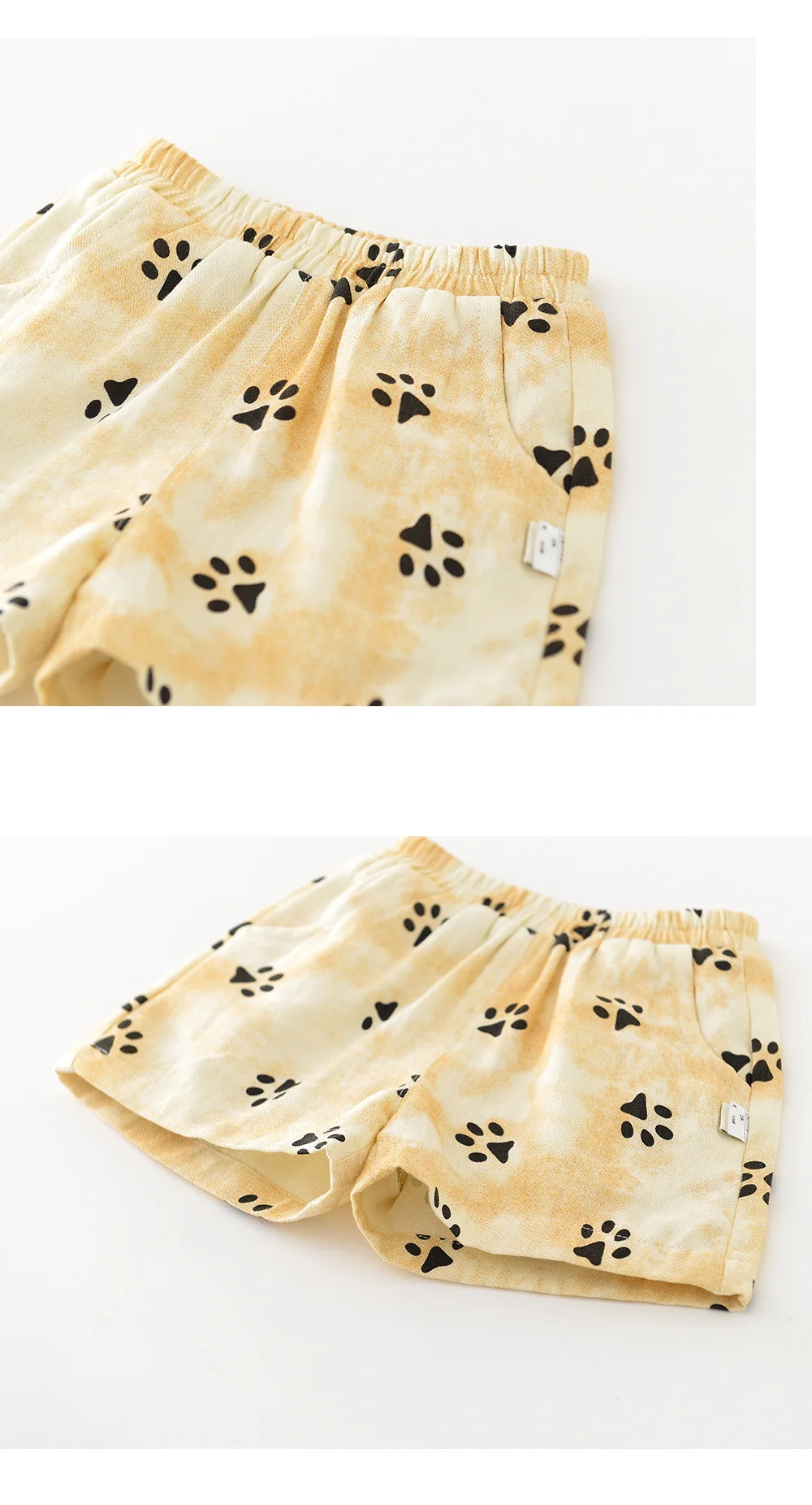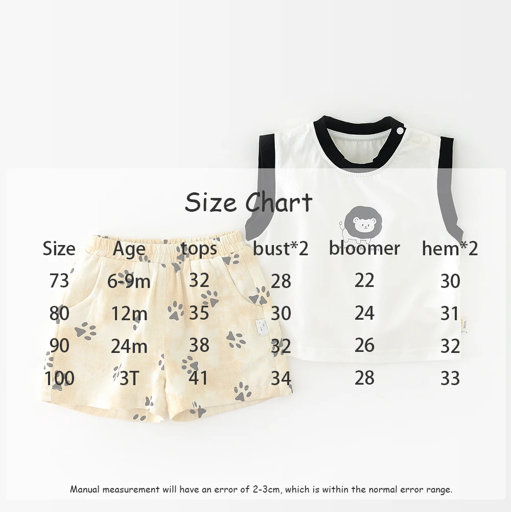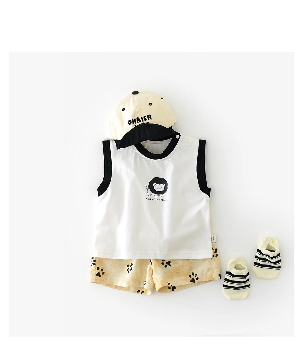 1.**Adorable diseño de dibujos animados**: este conjunto de dos piezas presenta un lindo gráfico de león en la blusa blanca sin mangas con las palabras "Re del bosque", y los pantalones cortos están decorados con un divertido patrón de estampado de patas.Es perfecto para añadir un toque divertido al guardarropa de tu bebé.