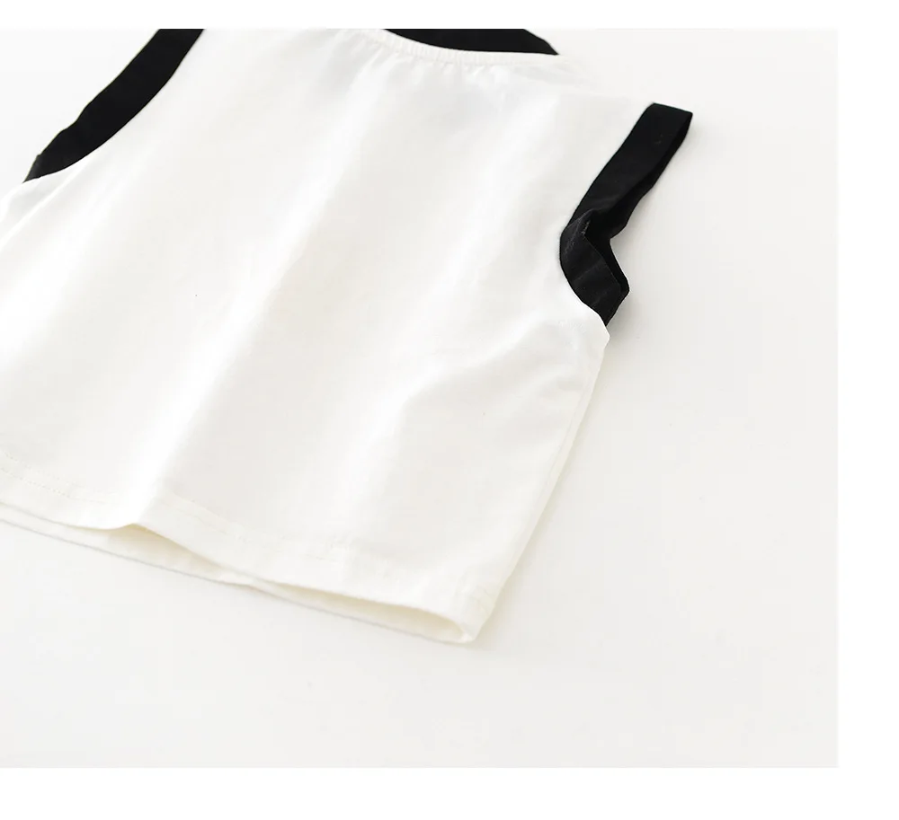 3.**Práctico y elegante**: la camiseta sin mangas es fácil de poner y quitar, y la cintura elástica de los pantalones cortos proporciona un ajuste cómodo y ajustable.El ribete negro en contraste en la parte superior añade un elemento elegante.