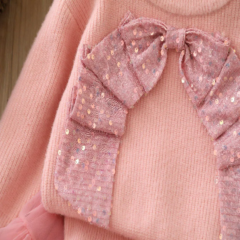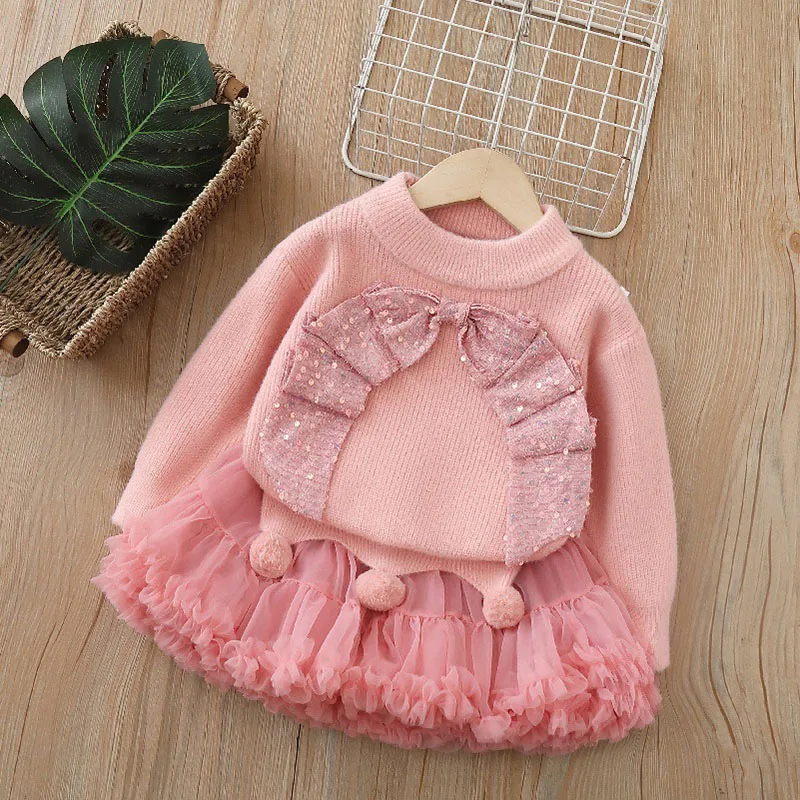 El combo de suéter de punto + falda de tul ahorra tiempo de peinado y golpea la demanda * "conjunto de 2 piezas para niños".