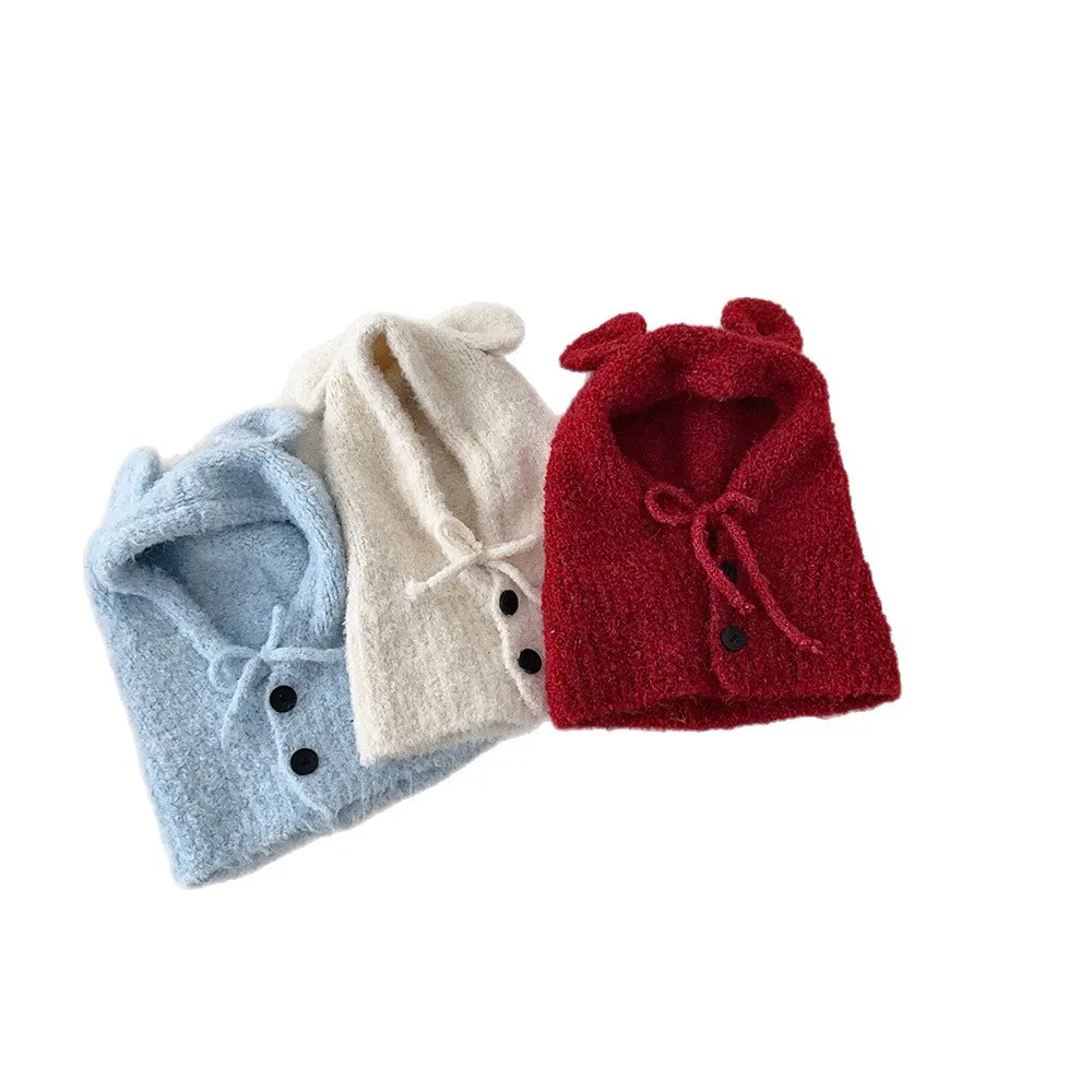 Comprar MILANCEL nuevo gorro de invierno para niños, gorro de punto de Color sólido cálido acolchado de lana para niños, gorro grueso de una pieza con bufanda