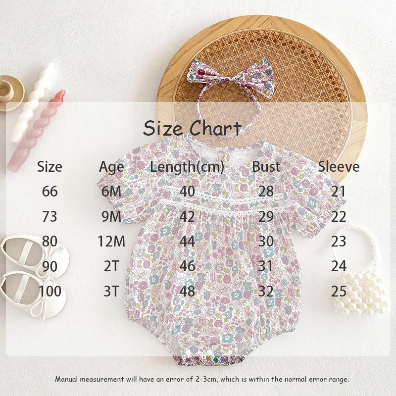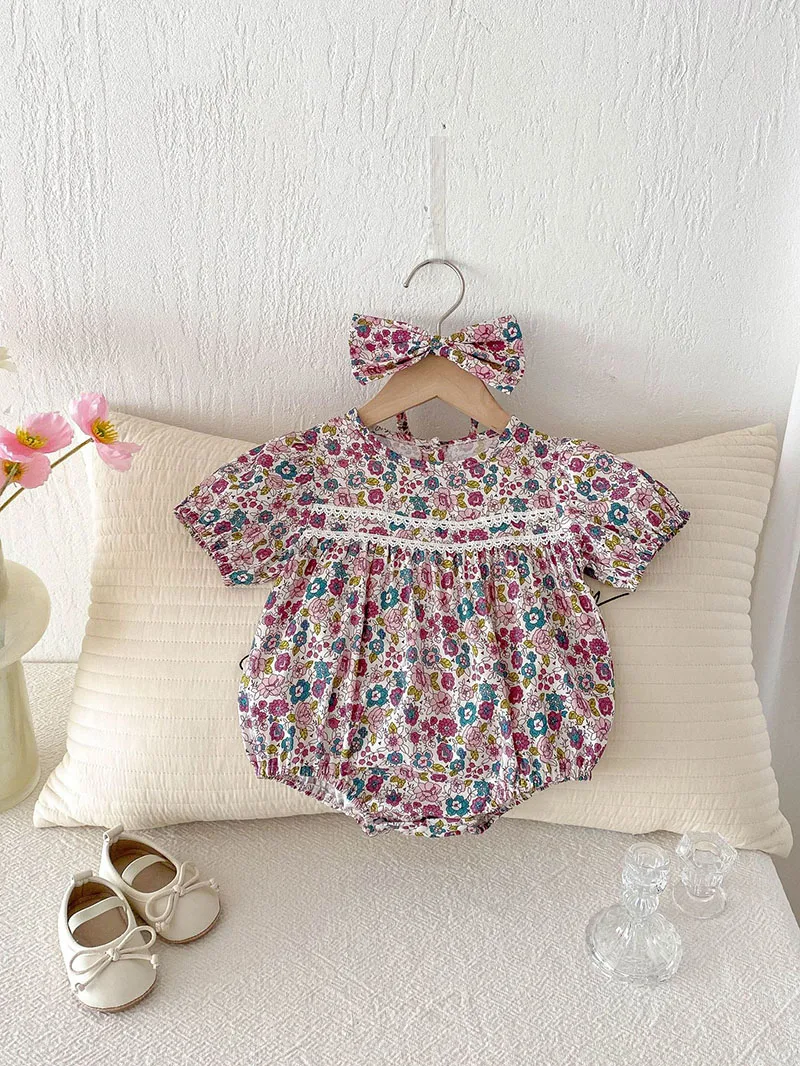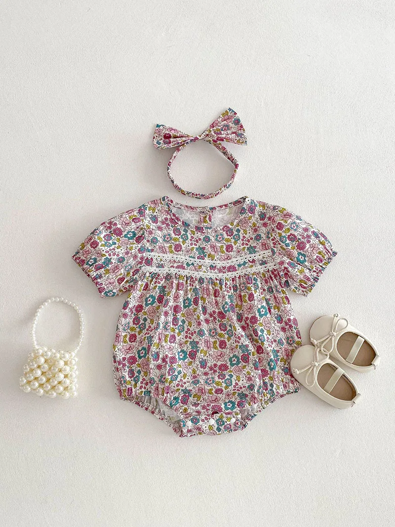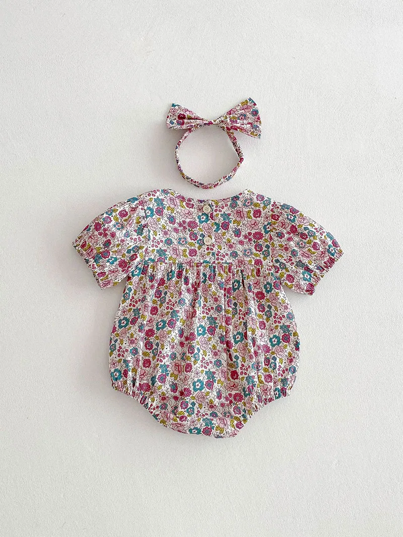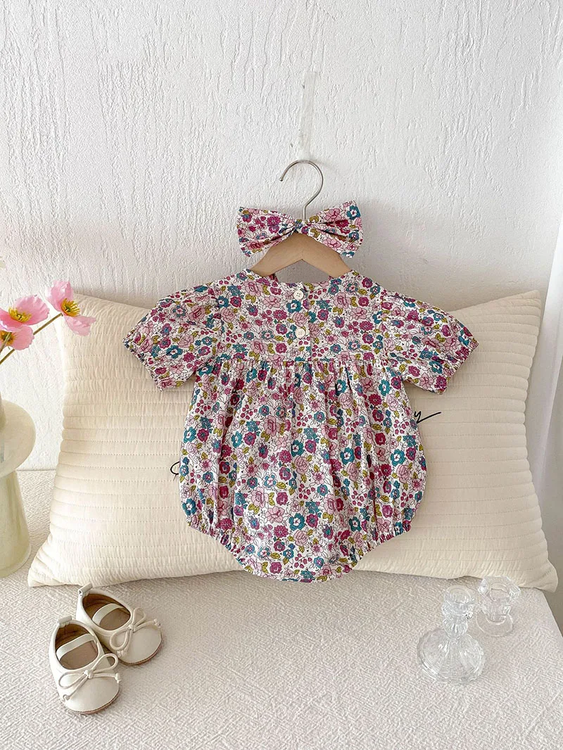Comprar MILANCEL, nuevo mono Floral de verano para niñas, mono con estampado completo de flores para bebés + banda para el pelo, ropa infantil de una pieza con mangas abullonadas