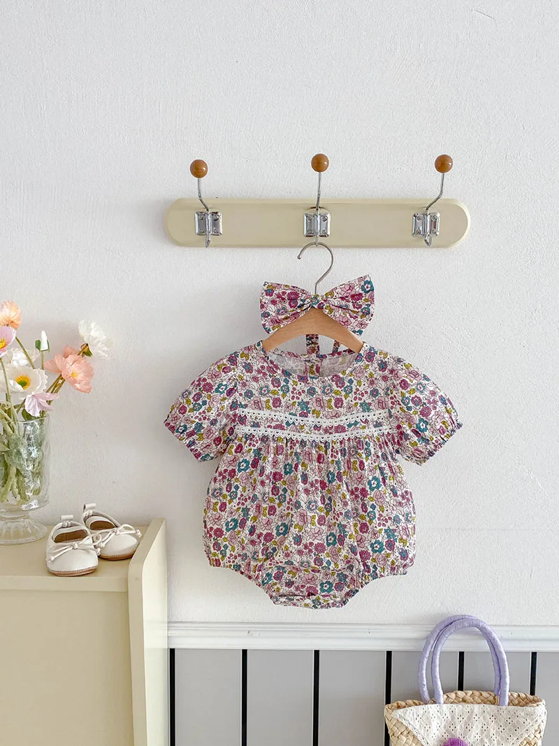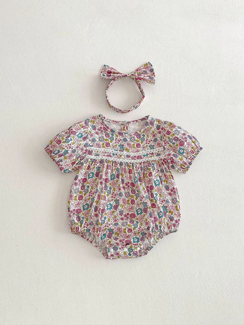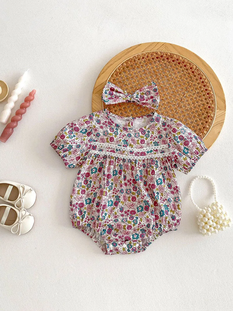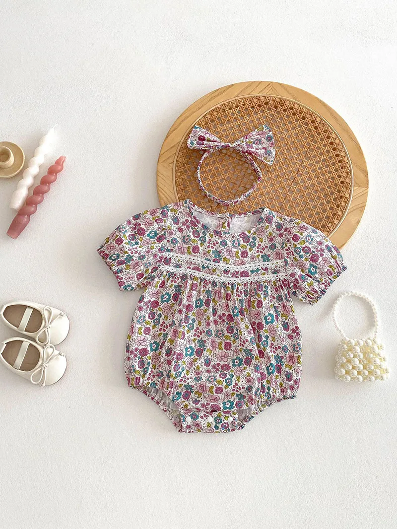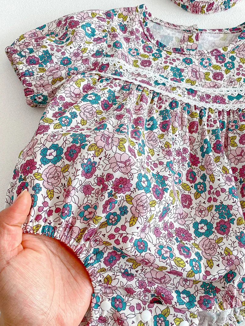 Comprar MILANCEL, nuevo mono Floral de verano para niñas, mono con estampado completo de flores para bebés + banda para el pelo, ropa infantil de una pieza con mangas abullonadas