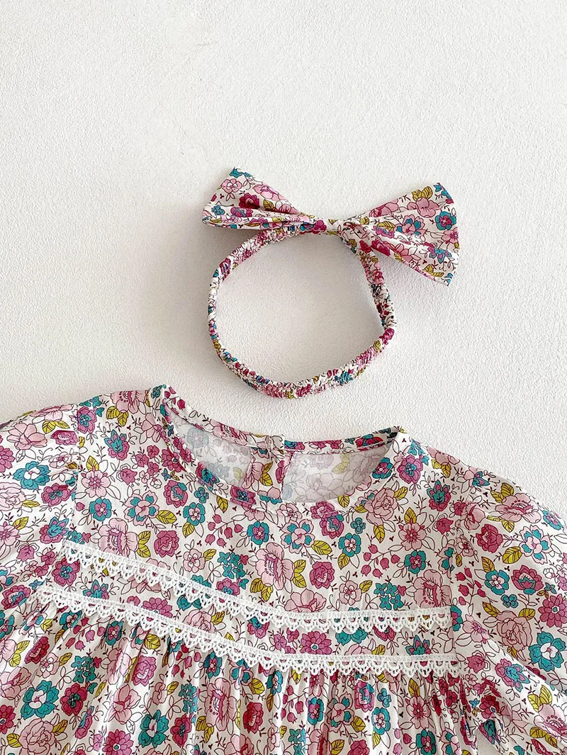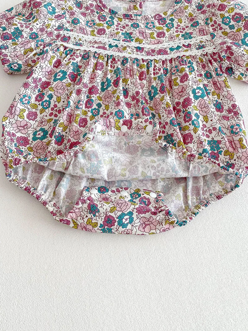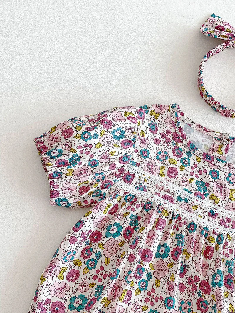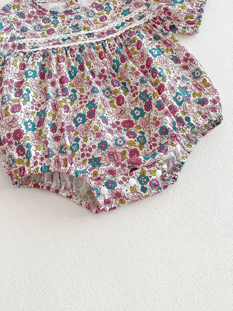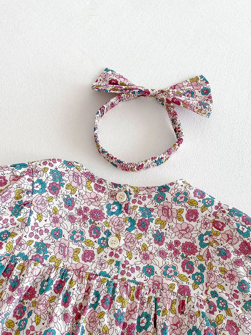 Comprar MILANCEL, nuevo mono Floral de verano para niñas, mono con estampado completo de flores para bebés + banda para el pelo, ropa infantil de una pieza con mangas abullonadas