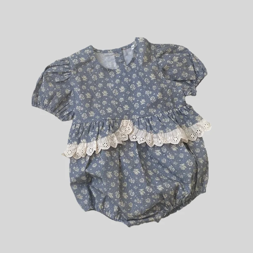 Adopte el encanto del estilo nórdico con exquisitos patrones florales, presentando un estilo retro.El dobladillo recortado de encaje en la parte superior añade un toque de elegancia y dulzura, haciendo que tu bebé sea lindo.