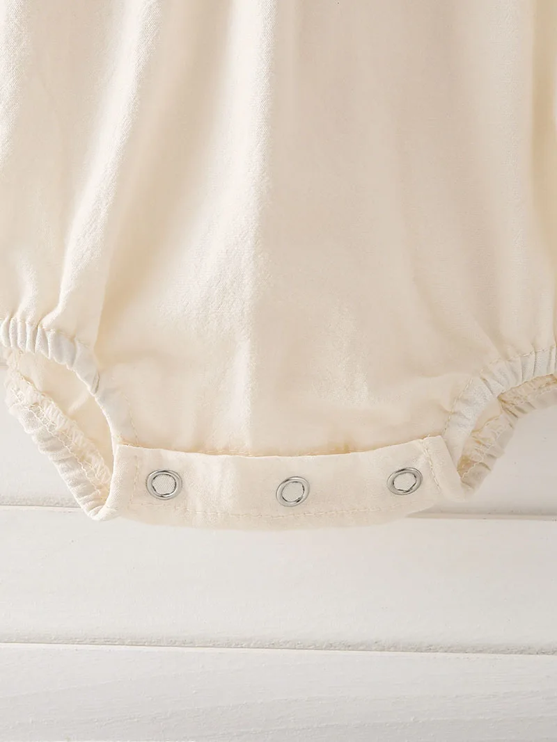 El cuello cuadrado añade elegancia, mientras que las mangas abullonadas aportan un encanto divertido, realzando el dulce atractivo del mono.