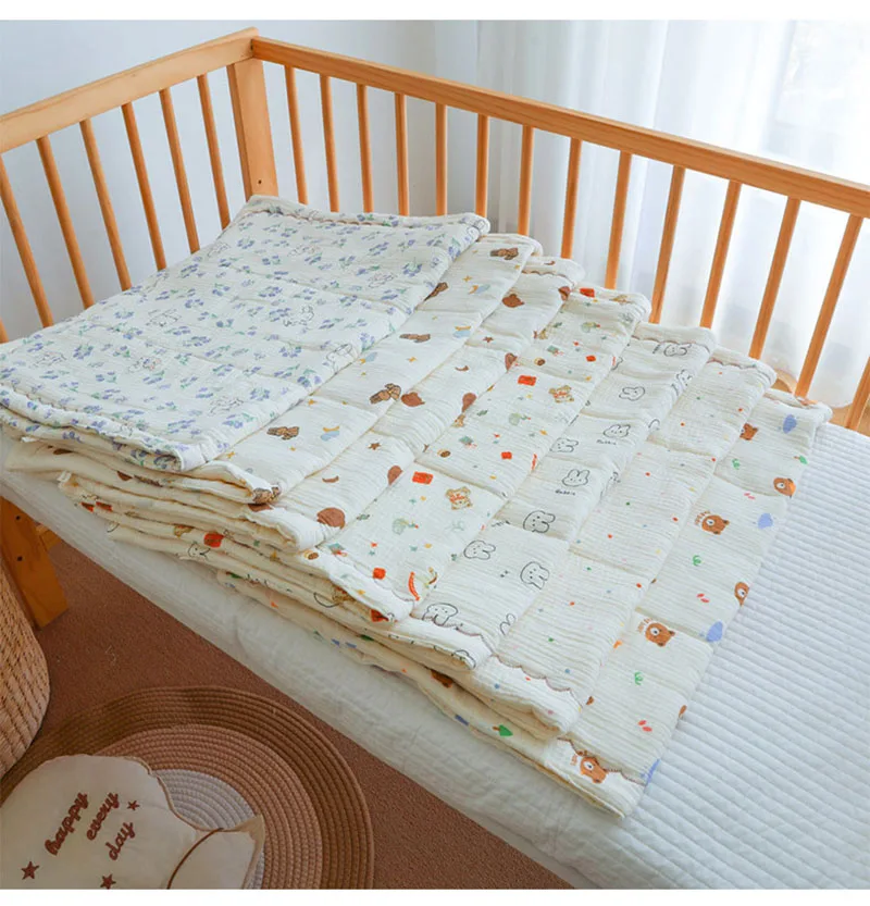 Los estampados adorables (muñecos, osos, flores) crean un ambiente relajante y amigable para la guardería, alineando con la estética moderna de "decoración linda para bebés".