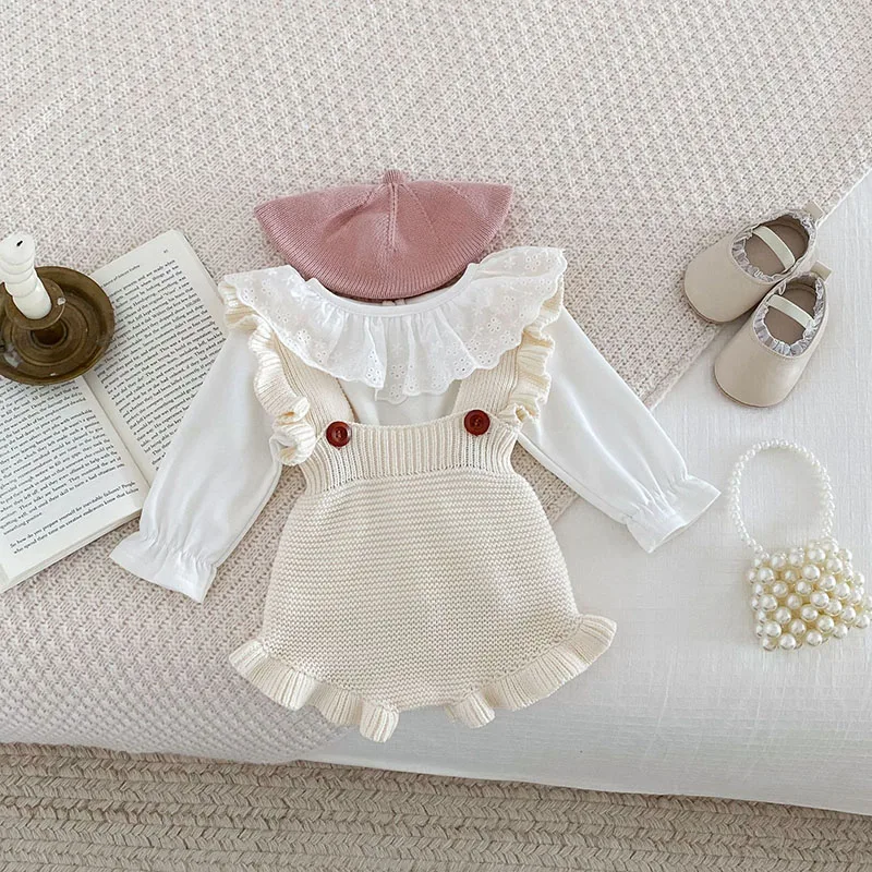 MILANCEL nuevo otoño niñas general bebé lindo 3 colores tejido correa de hombro mono infantil dulce mamelucos - imagen 1