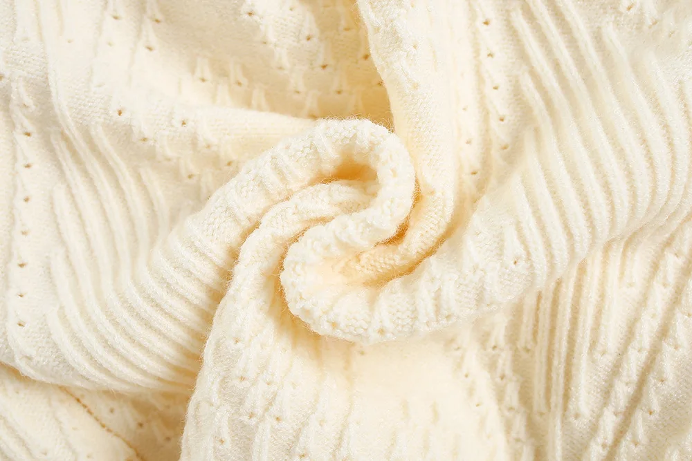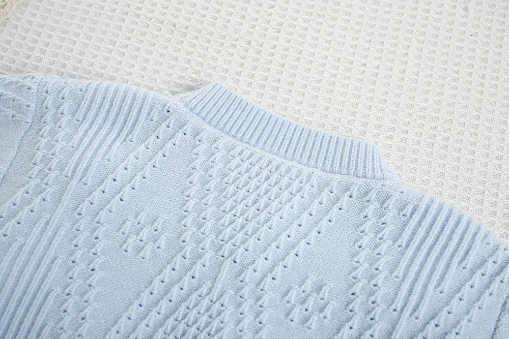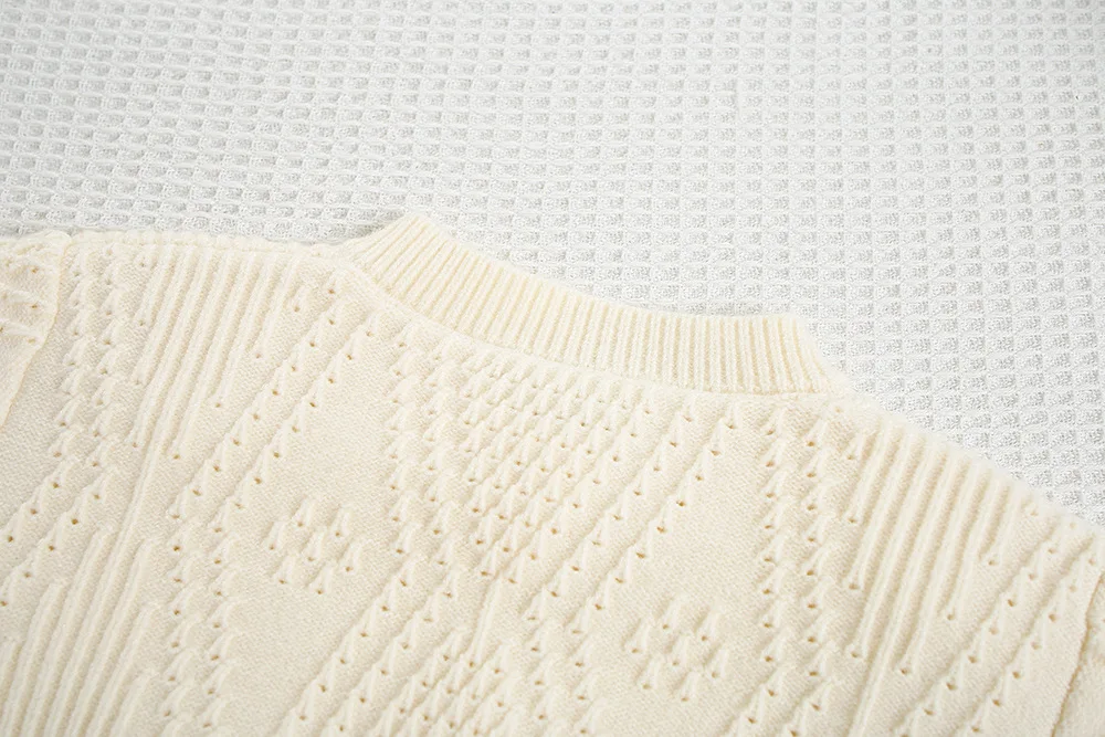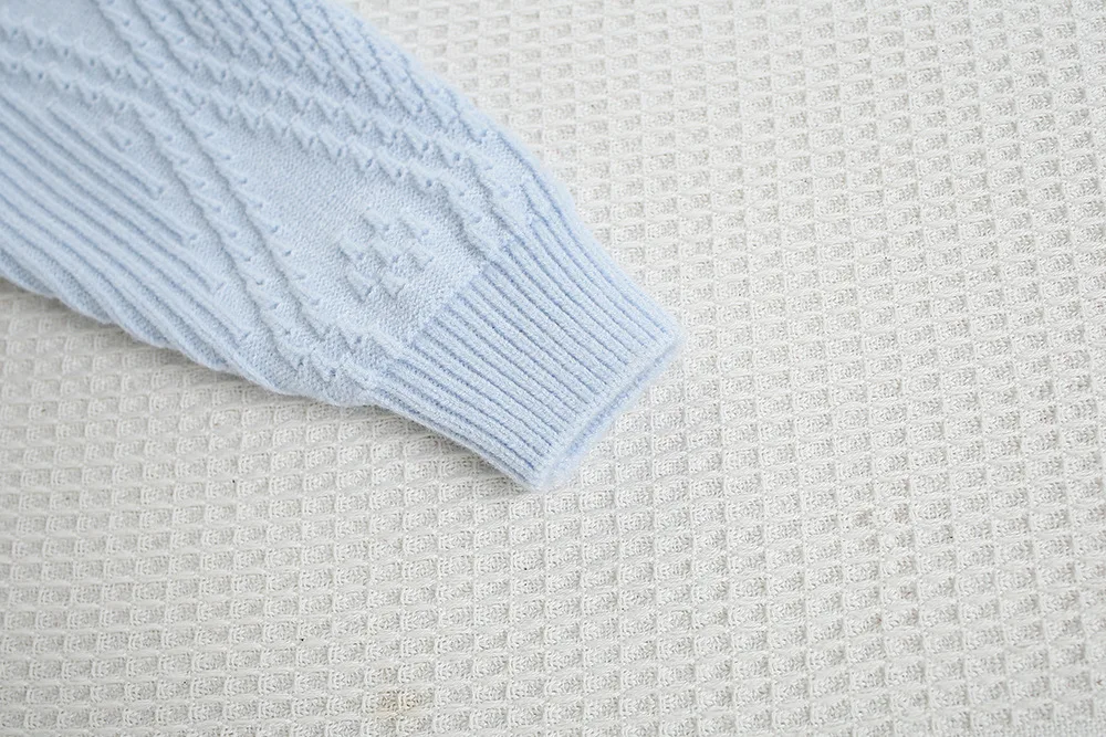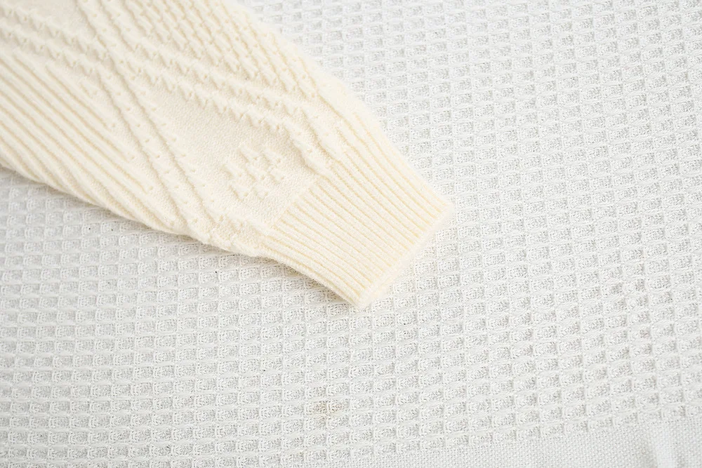 4.**Patrón de tejido intrincado**: El patrón de tejido detallado le da al suéter una apariencia texturizada y de alta calidad.