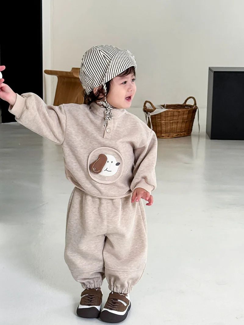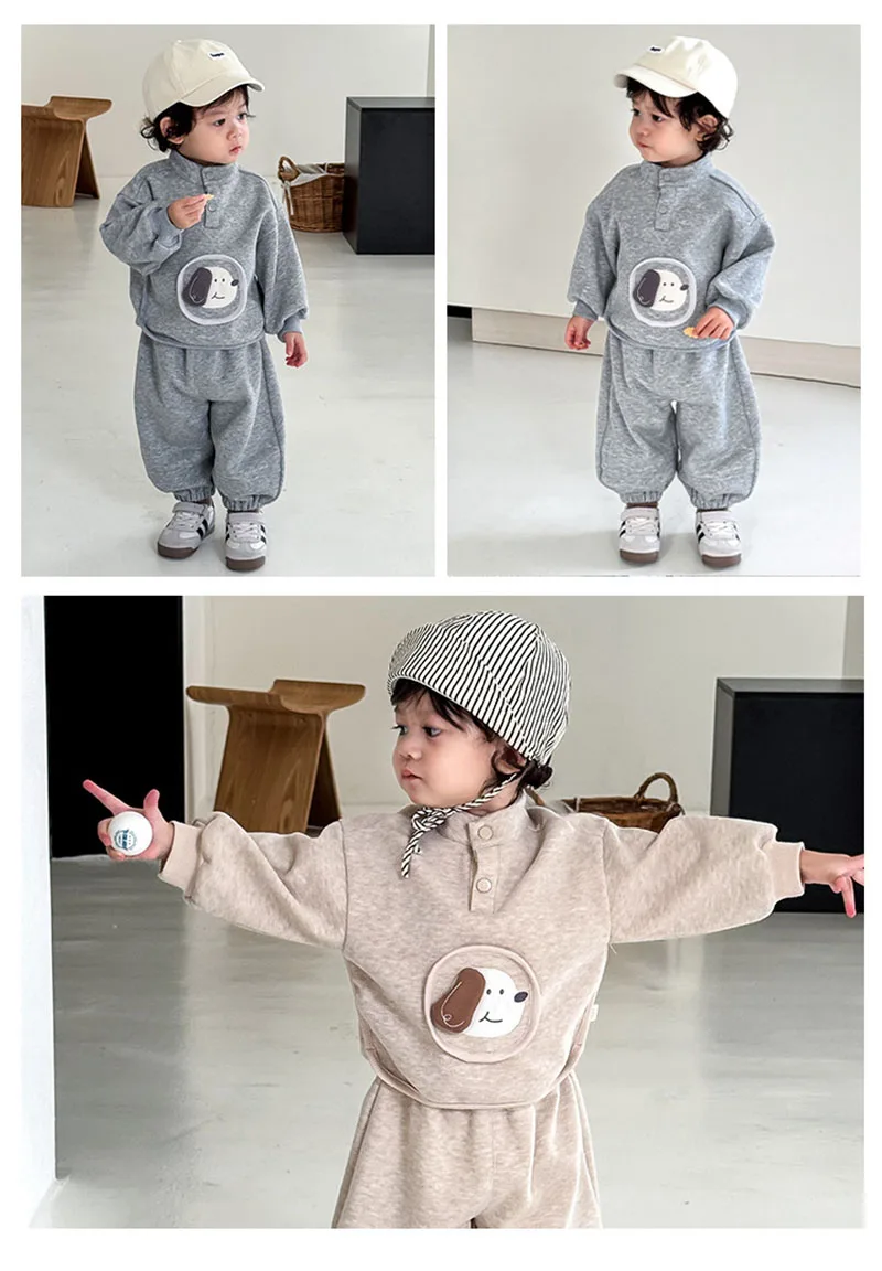 - **Adorable diseño de perro de dibujos animados**: El lindo motivo de perro de dibujos animados en la sudadera agrega un toque encantador y divertido, haciendo que los niños se vean muy encantadores.Es perfecto para crear un look divertido y elegante para actividades diarias o salidas informales.