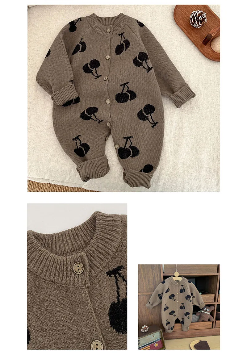 - **Adorable estampado de cerezas**: El lindo estampado de cerezas agrega un toque dulce y animado, haciendo que el mono sea perfecto para crear una apariencia encantadora para los bebés.Es muy atractivo tanto para los bebés como para los padres que aman los diseños lindos.