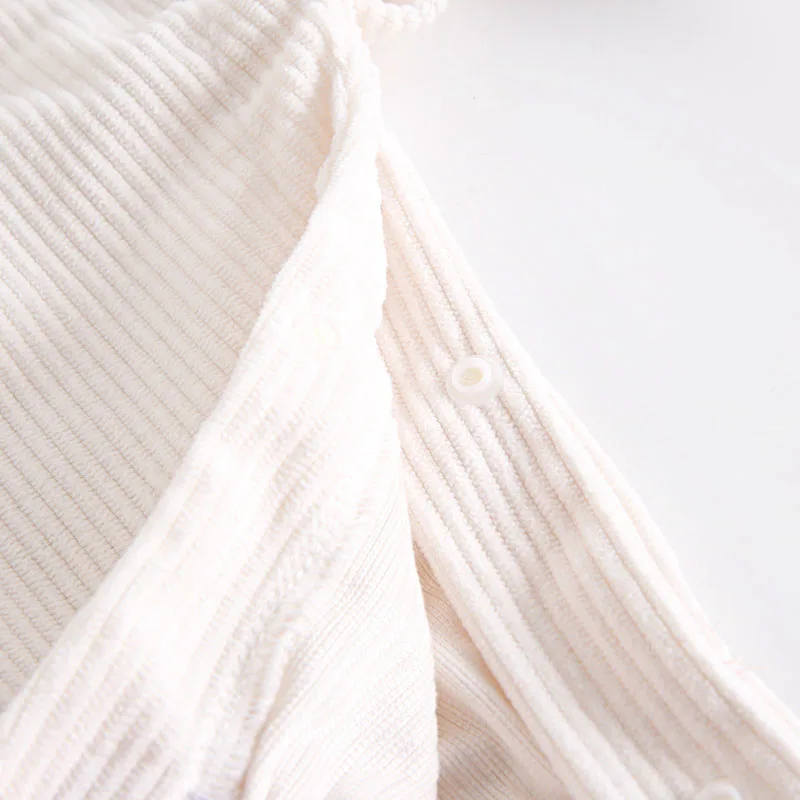 - **Tela de pana vintage**: Confeccionada en pana, una tela texturizada que aporta un encanto vintage y proporciona un toque cómodo y ligeramente cálido para el otoño.