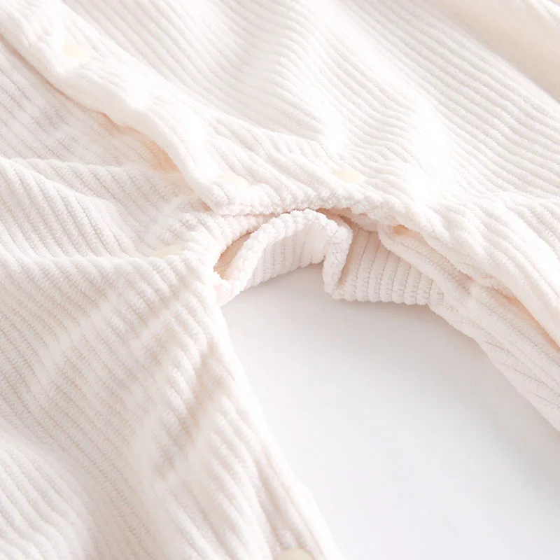 - **Cómodo cierre a presión**: Equipado con botones a presión hacia abajo en la parte delantera y entre las piernas, lo que hace que los cambios de vestimenta y pañal sean rápidos y fáciles para los padres.