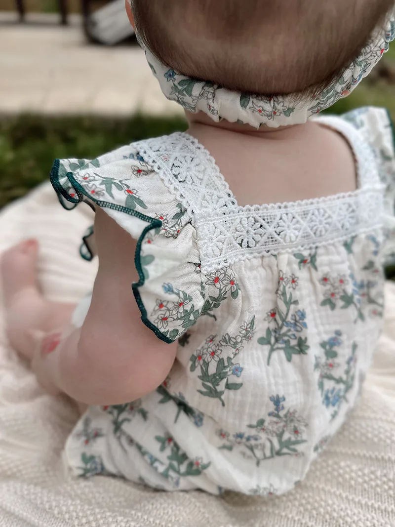 Comprar MILANCEL, nuevo peleles de verano para niñas, mono Floral verde dulce de una pieza para niños pequeños con diadema, prendas de vestir para niños, trajes