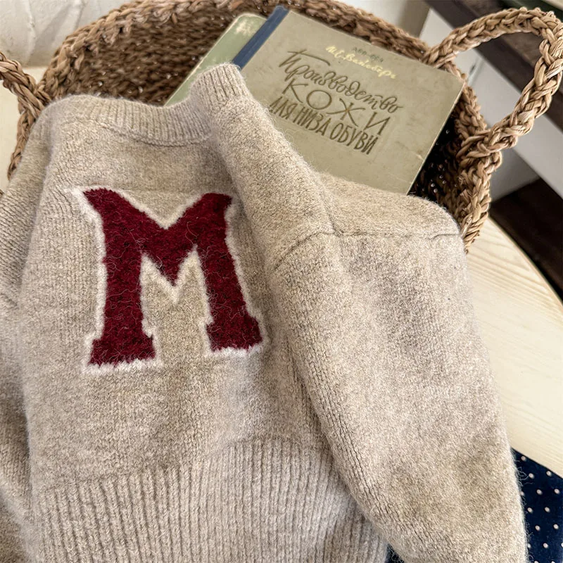 - **Retro Preppy Letter Design**: Features large, retro - style letters (“M” and “B”) on the front, adding a classic and preppy touch to the sweater.